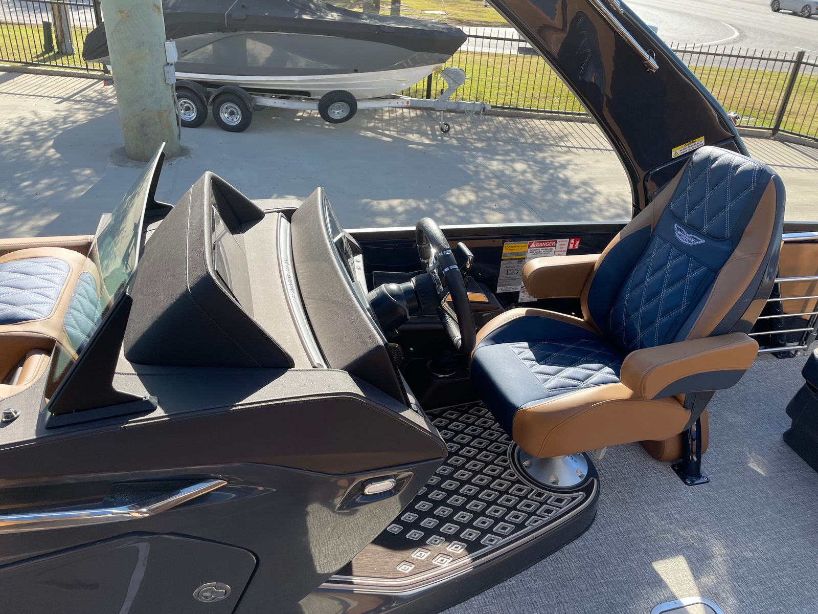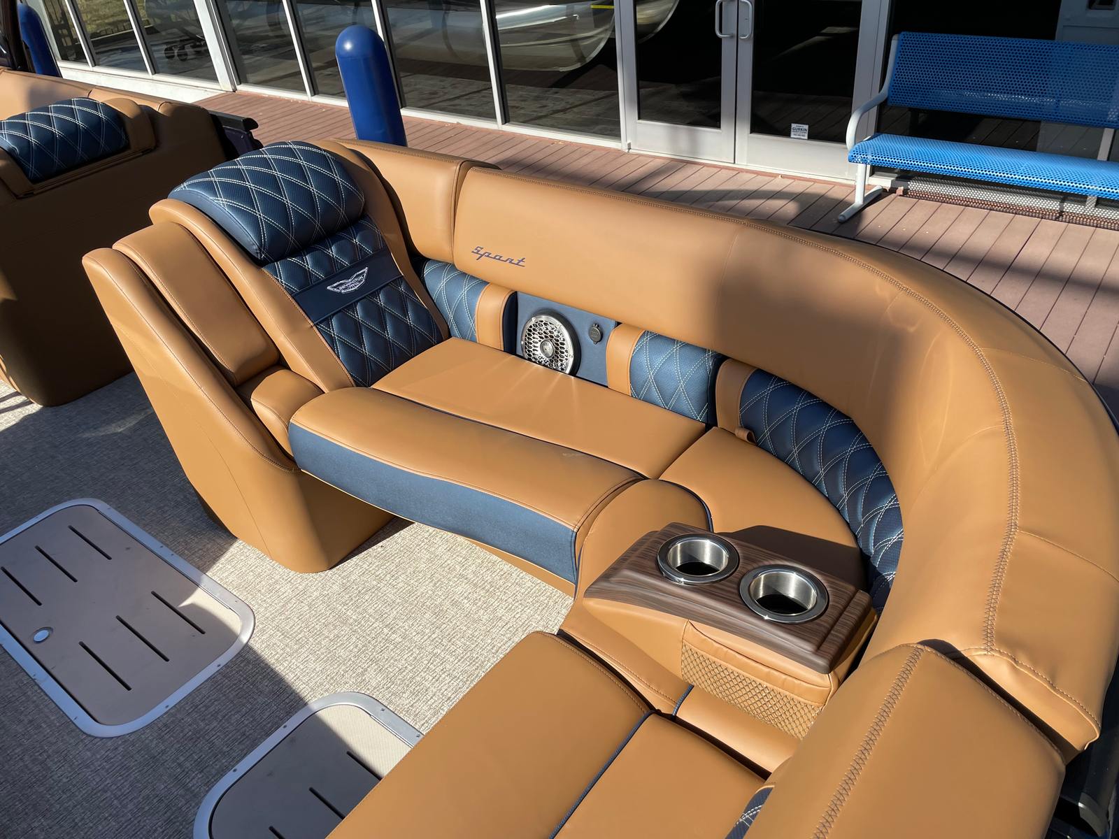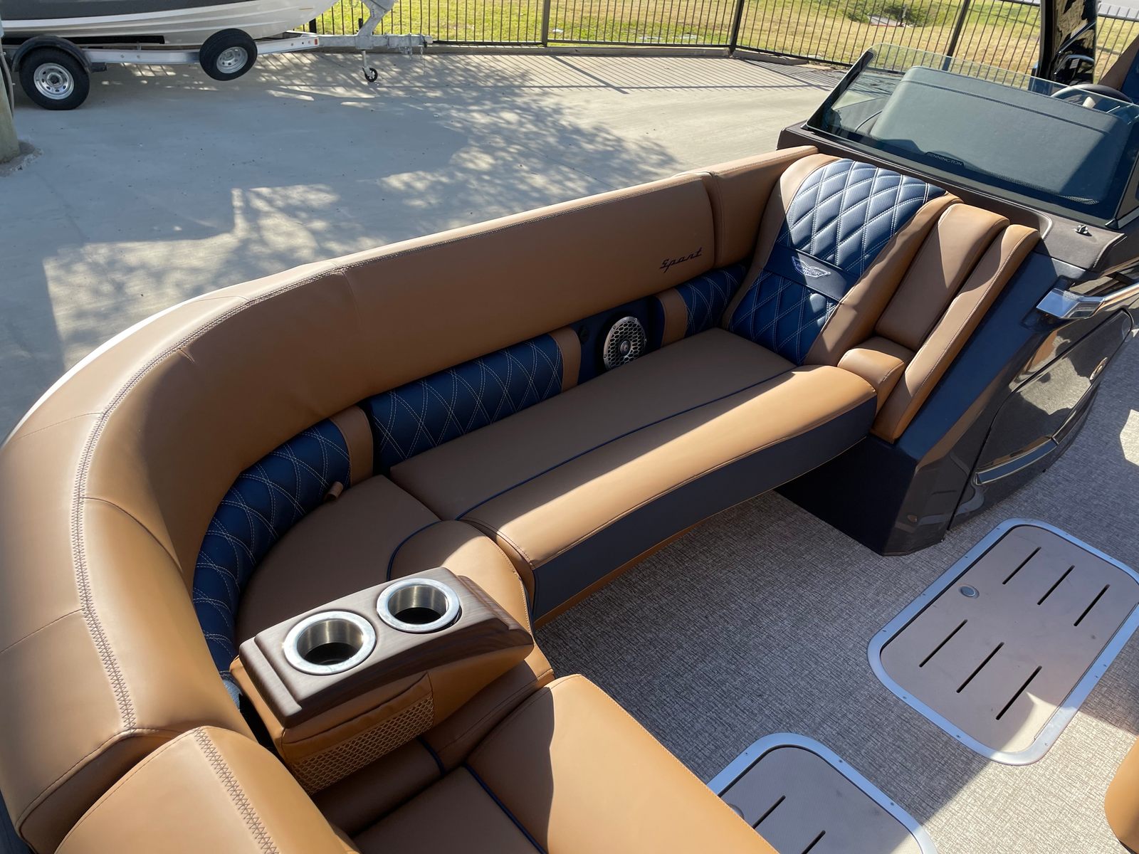 Step into a world of luxury with the Bennington 25 Qxsba ESP’s array of special features designed to elevate your time on the water. The Power Cladded Sport Arch adds a striking visual element while providing practical benefits for watersports and shade. Illuminated cupholders, exterior side lighting, underwater lighting, and toekick lights create a vibrant, inviting atmosphere for evening gatherings and late-night cruises. The Blackout Logos give the boat a modern, upscale look, while the Console Platinum finish adds a touch of elegance to the helm.Music lovers will appreciate the premium audio system, featuring six Rockford Fosgate 6.5" M2 speakers throughout the boat and two additional speakers on the arch, complemented by a powerful 10" M2 subwoofer and a PM Punch Amplifier Upgrade. This setup ensures crystal-clear sound and deep bass, perfect for setting the mood during any outing. Every detail, from the lighting to the audio, is designed to enhance your enjoyment and create unforgettable memories on the water.