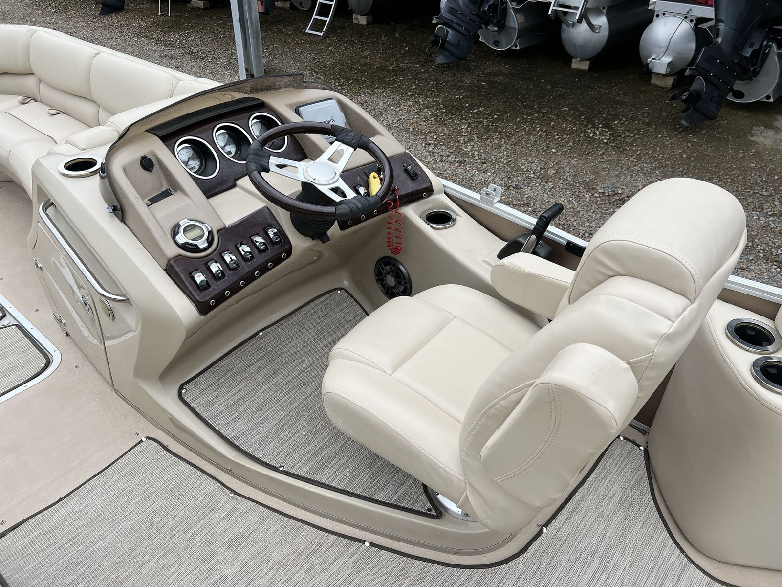 Powering the Bennington 2550 RCL is a robust single engine delivering an impressive 250 horsepower. This setup ensures that the pontoon is not only capable of smooth and steady cruising but also has the muscle for more spirited rides when the mood strikes. Whether you are gliding across calm waters or picking up speed for a bit of excitement, the 250 HP engine provides reliable performance and responsive handling. The combination of power and efficiency makes this pontoon boat for sale a versatile option for a wide range of boating activities, from leisurely sightseeing to towing water toys.