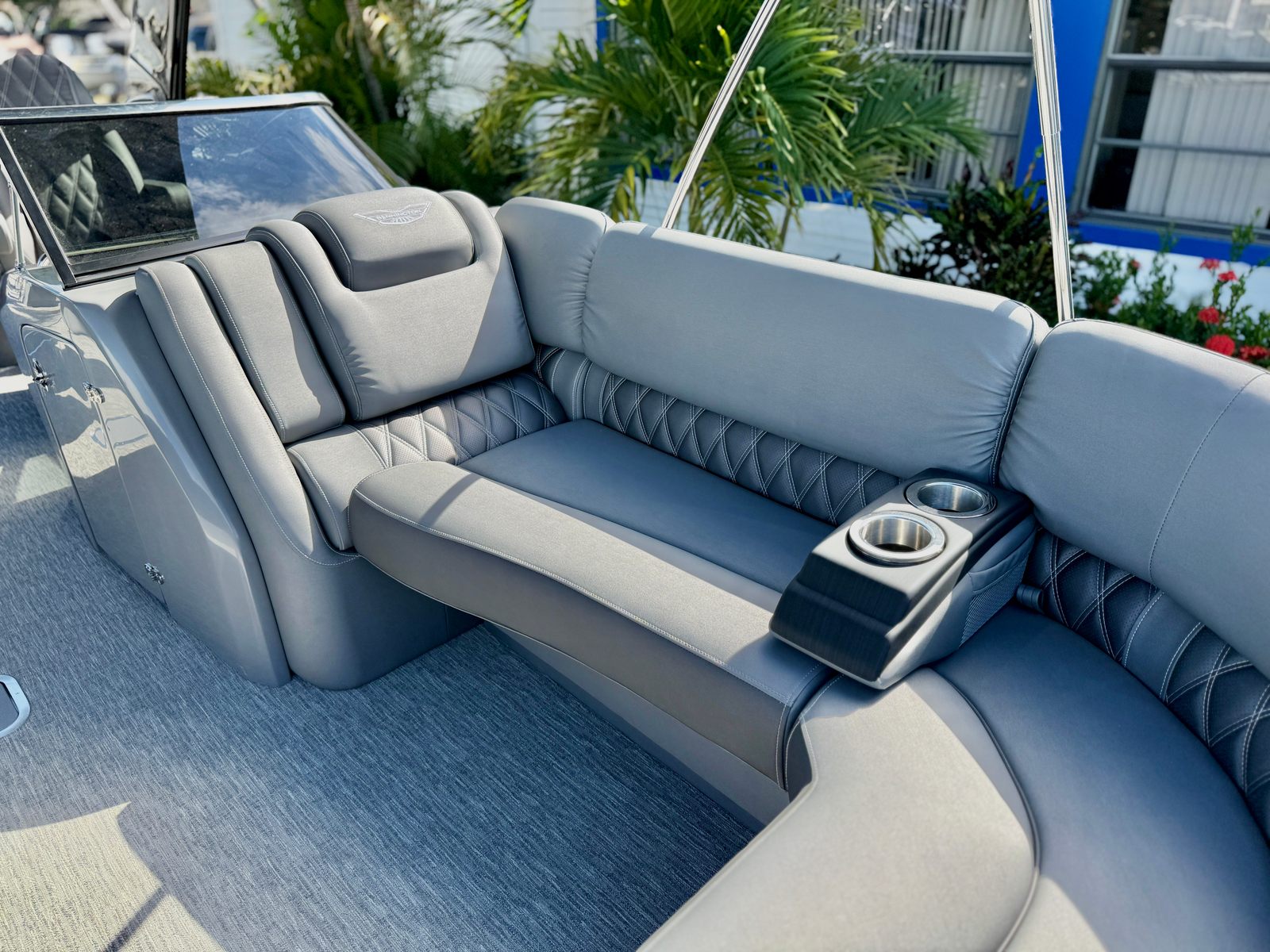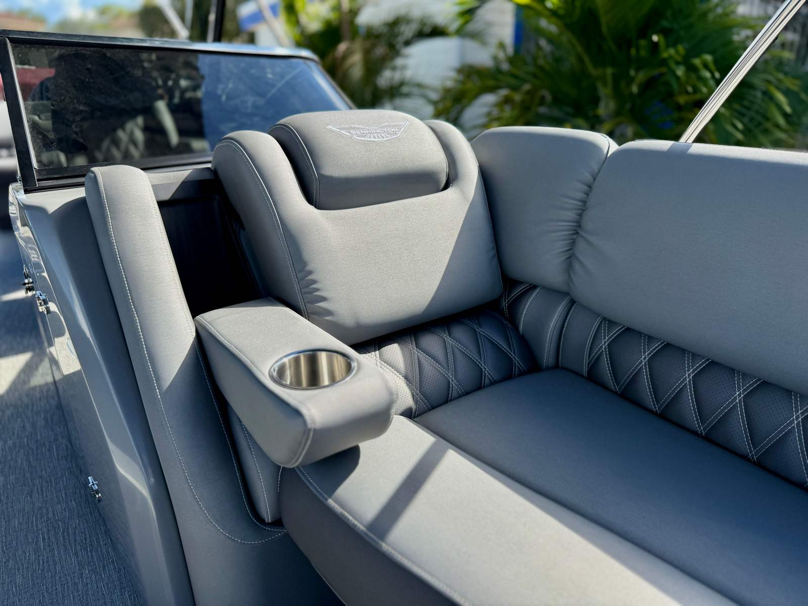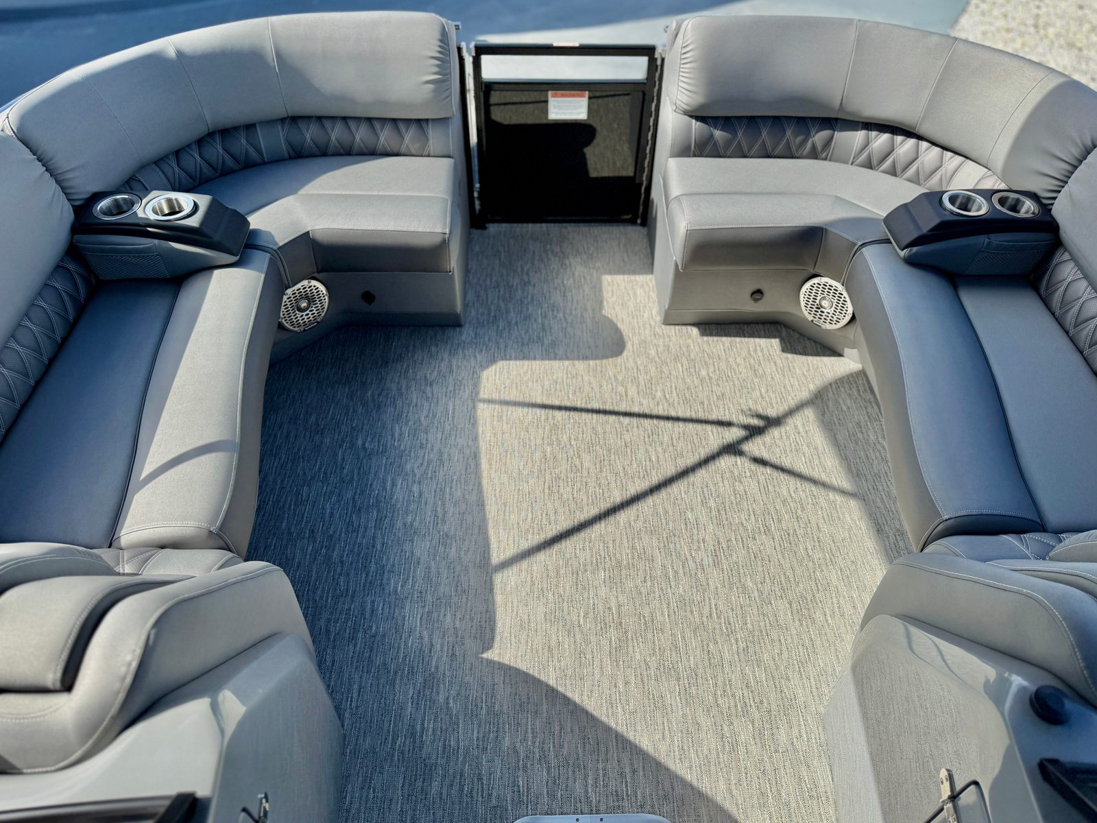 Owning the Bennington 27 QXFBWAX2 ESP pontoon boat means embracing a lifestyle of fun, relaxation, and social connection. The spacious deck layout provides ample room for guests to lounge, mingle, and soak up the sun. The advanced lighting systems create a festive atmosphere for evening cruises, while the premium audio setup ensures your favorite playlists sound incredible, whether you’re anchored in a quiet cove or hosting a lively party on the water.Comfort is paramount, with plush seating and thoughtful design elements that make every moment onboard enjoyable. The illuminated cupholders and accent lighting add a touch of luxury, while the high-performance engines guarantee thrilling rides and smooth cruising. This Bennington boat for sale is perfect for those who want to combine excitement with relaxation, offering the best of both worlds.