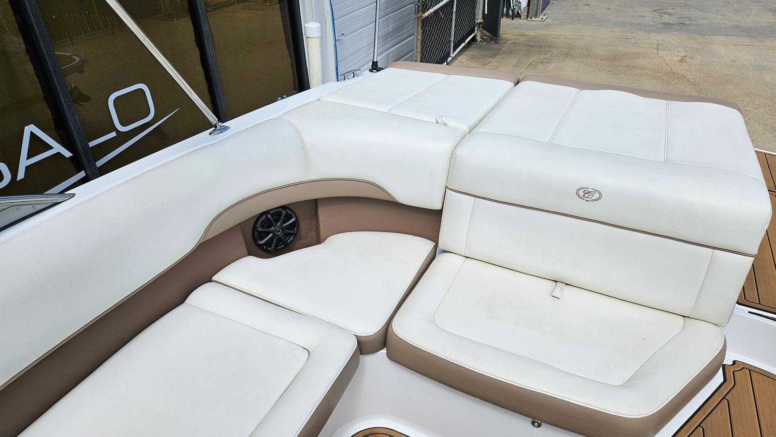 This used Cobalt boat for sale comes equipped with a range of special features designed to elevate your boating experience. The Volvo 270HP engine ensures reliable and spirited performance, while the tandem axle trailer provides convenient transport and storage options. Counter rotating props contribute to superior handling, making every outing smooth and enjoyable. The onboard stereo system sets the perfect soundtrack for your day on the water, and the Sea Deck offers a comfortable, non-slip surface for added safety and luxury. Each feature is thoughtfully integrated to enhance both functionality and enjoyment, ensuring that every trip is memorable.