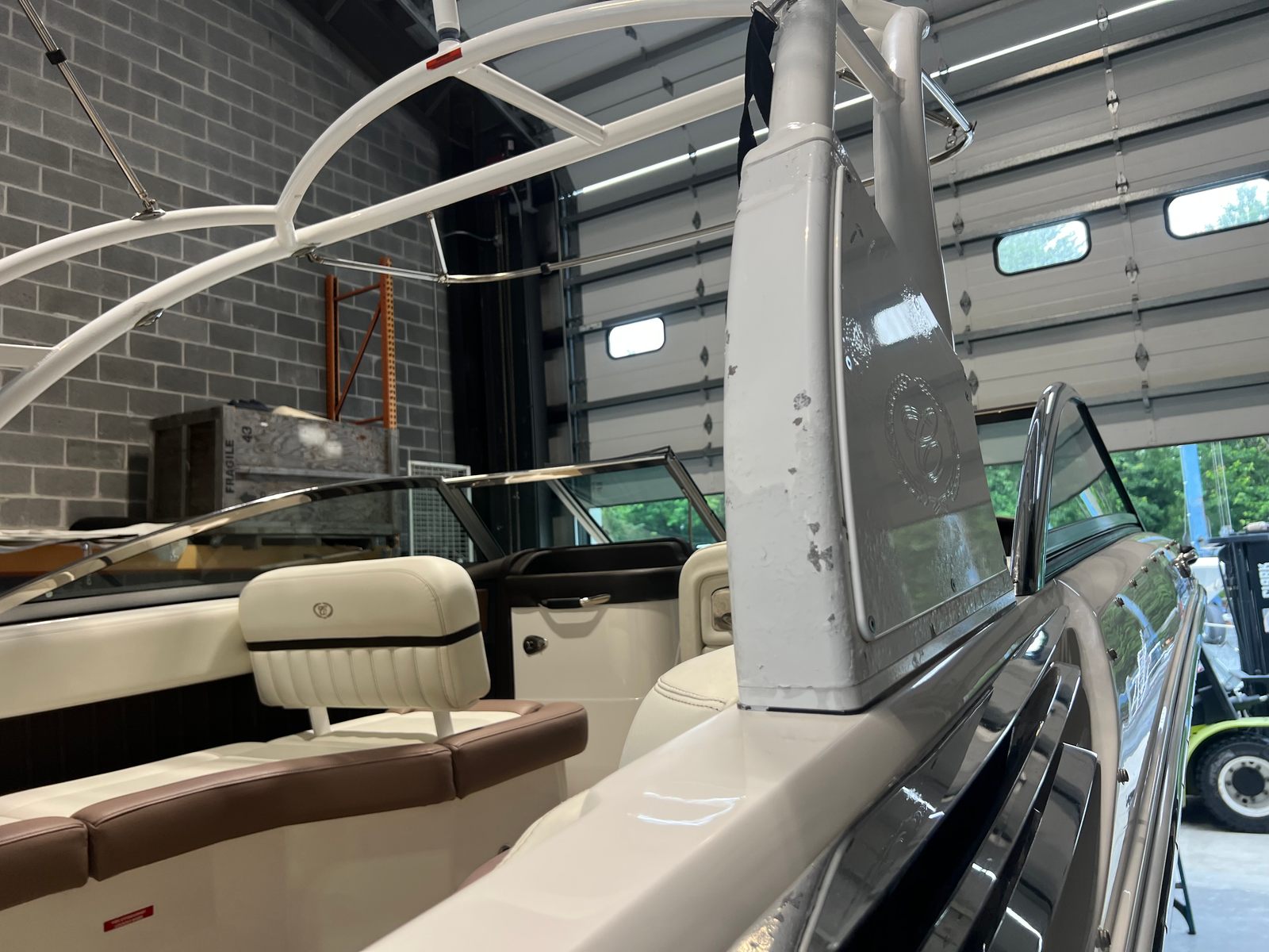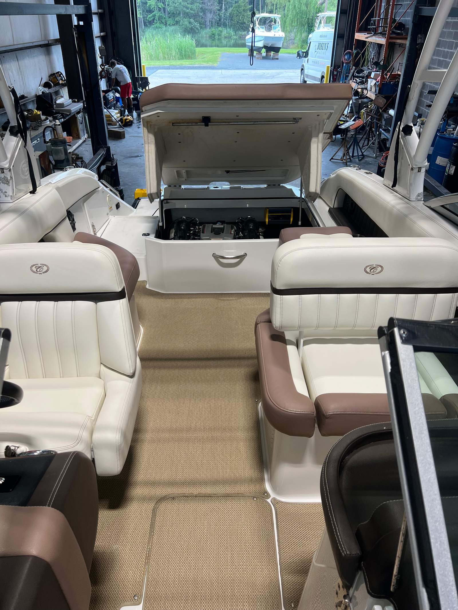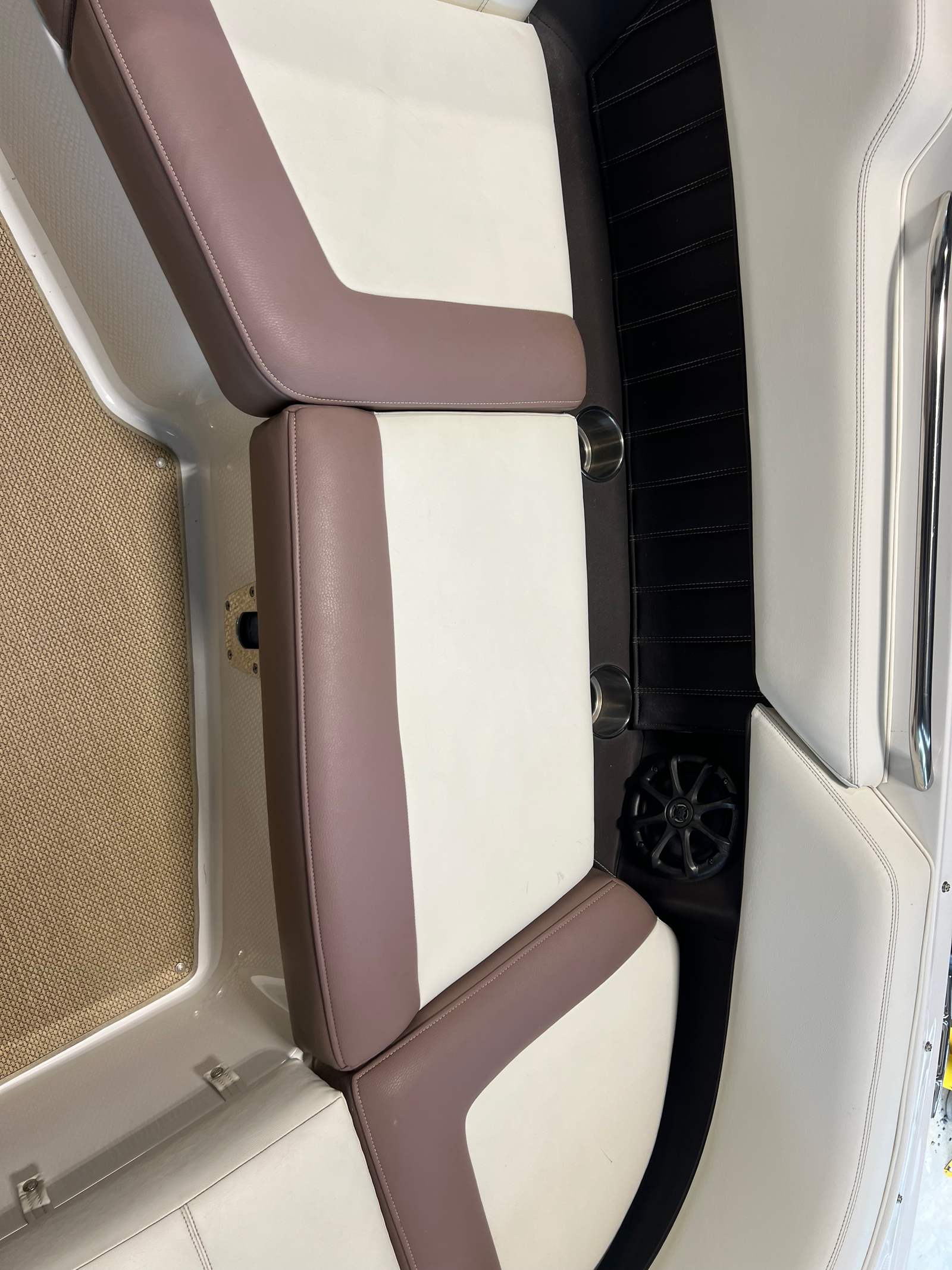 The Cobalt 265 C is designed with comfort and convenience in mind, offering a spacious bow seating area that invites guests to relax and soak up the sun. The open layout is perfect for social gatherings, with plush seating and ample legroom throughout. The ergonomic helm station provides intuitive controls and excellent visibility, ensuring the captain enjoys every moment at the wheel.This bowrider boat for sale is equipped with thoughtful storage solutions, making it easy to stow away gear, water toys, and personal items. The integrated swim platform offers easy access to the water, perfect for swimming, boarding, or simply lounging at anchor. Every detail of the 265 C reflects Cobalt’s commitment to quality, from the premium upholstery to the durable, easy-to-clean surfaces.