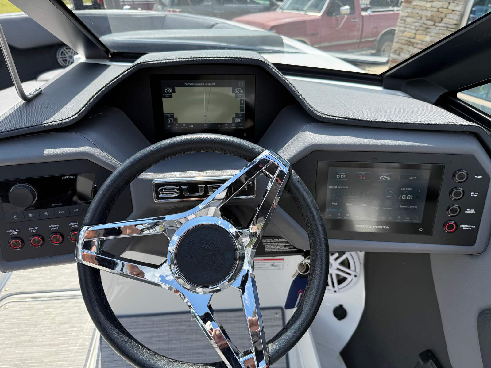 The 2024 Cobalt CS23 Surf is packed with features that enhance both its performance and comfort. As a bowrider, it offers an open and inviting layout, with plush seating in the bow and cockpit areas, allowing guests to relax and socialize with ease. The boat’s 23.4-foot length provides plenty of room for family and friends, making it perfect for group outings.Special features on the CS23 Surf include a surf-specific hull design that creates ideal wakes for wake surfing and other water sports. The intuitive controls and surf system allow you to customize the wave shape and size, ensuring a tailored experience for riders of all skill levels. The high-quality materials and finishes throughout the boat reflect Cobalt’s commitment to luxury and durability, while the ergonomic helm station puts all controls within easy reach for the captain.With its stylish lines, premium upholstery, and attention to detail, the CS23 Surf is as visually impressive as it is functional. The open bow area is perfect for sunbathing or enjoying the breeze, while the spacious cockpit provides a comfortable gathering spot for conversation and refreshments.