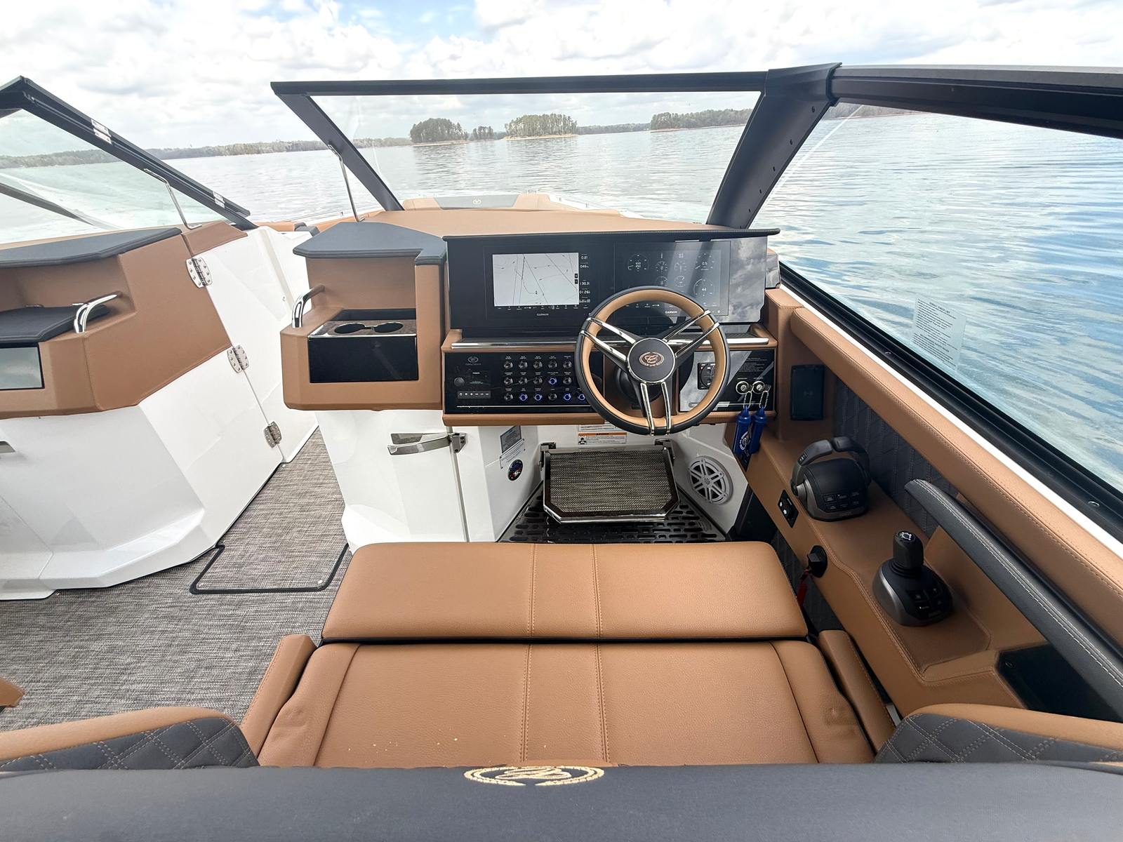 The layout is designed for versatility, with generous seating from bow to stern and plenty of room to move around without feeling crowded. The helm is clean and intuitive, while the cockpit and bow areas are set up for easy conversation, lounging, or dining. Storage is well thought out, keeping gear tucked away without sacrificing space.