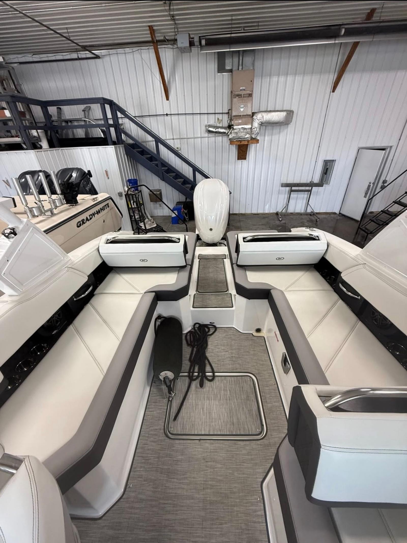 At the heart of the Cobalt R6 OB is a powerful 300-horsepower engine, delivering exhilarating performance and smooth handling. Whether you are gliding across calm waters or powering through choppy waves, this bowrider boat for sale offers responsive acceleration and impressive agility. The single-engine setup ensures efficient fuel consumption, while the low engine hours—just 36—mean you are getting a boat that is ready for countless adventures ahead. The R6 OB’s performance is engineered for both thrill-seekers and those who appreciate a leisurely cruise, providing the perfect balance between speed and stability.