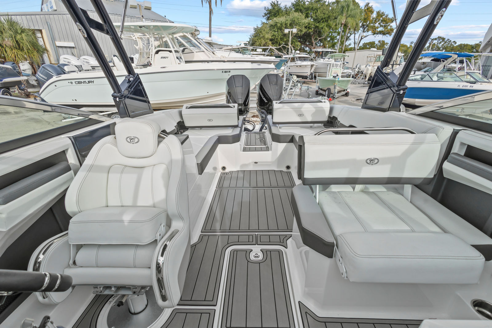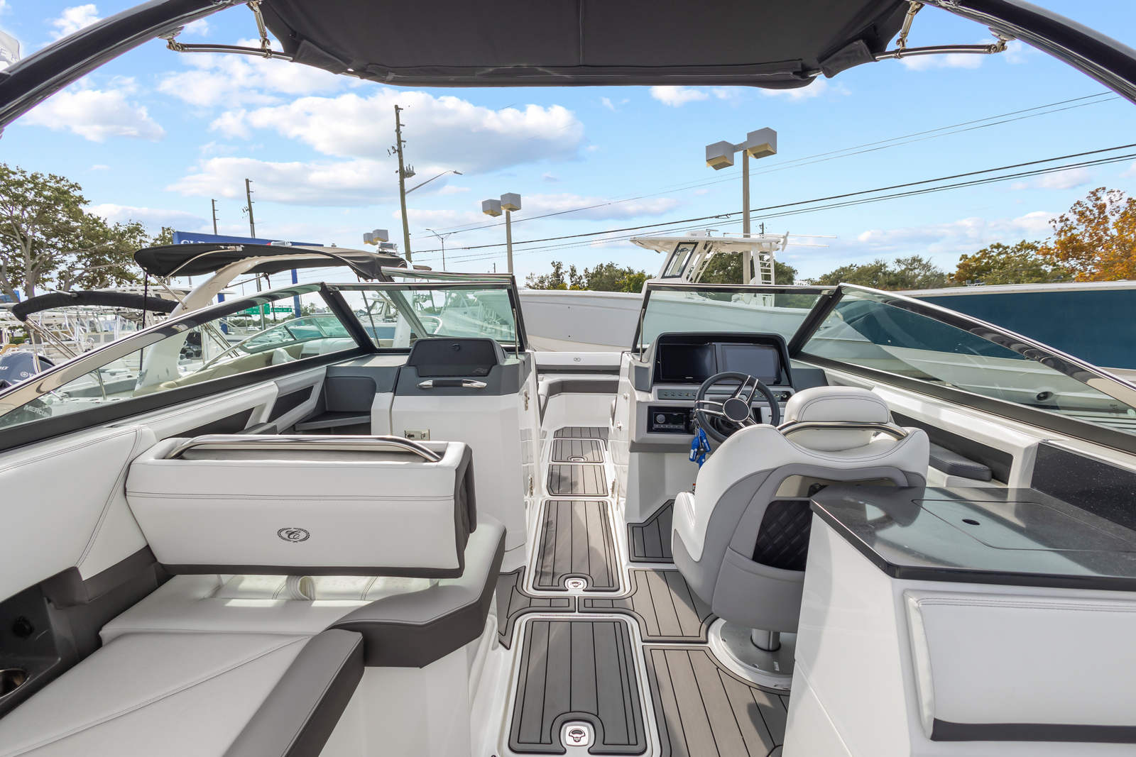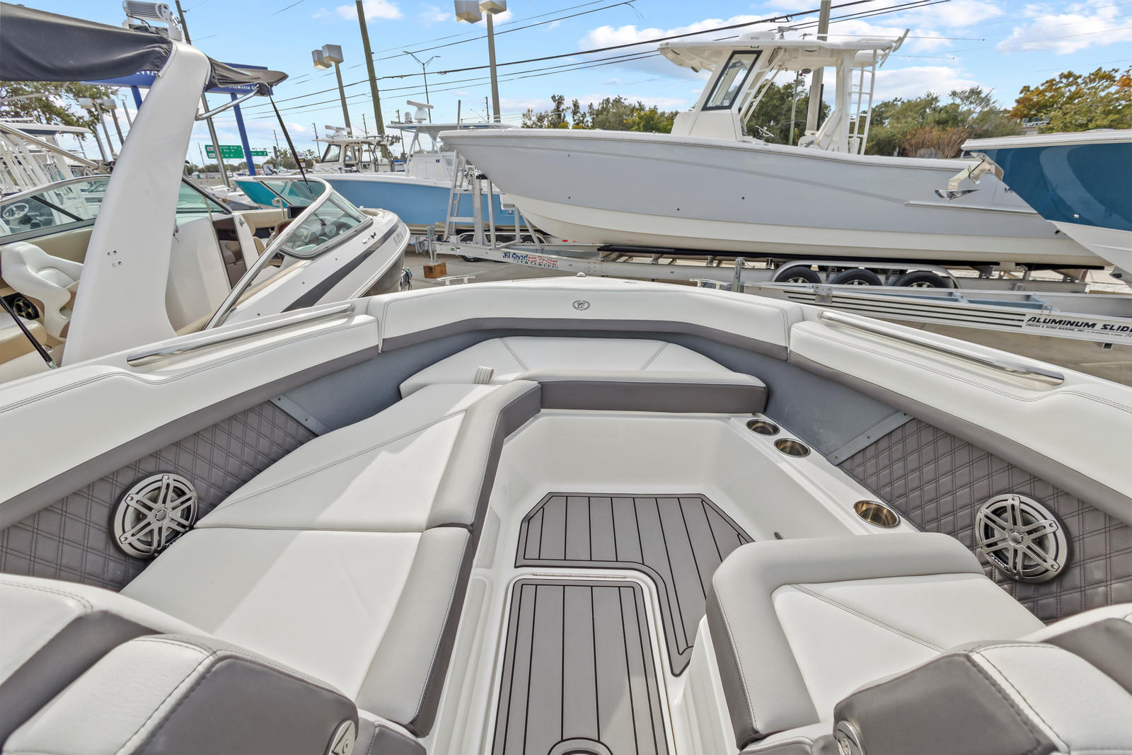 Power and precision are at the heart of the Cobalt R8 OB. Equipped with two robust engines delivering a combined 500 horsepower, this Bowrider boat for sale offers exhilarating acceleration and smooth handling. The twin-engine setup ensures optimal balance and control, making it easy to navigate tight turns or cruise effortlessly at higher speeds. With only 150 engine hours, these engines promise reliability and longevity for years to come. Whether you’re towing water toys, racing across open water, or enjoying a leisurely cruise, the R8 OB’s performance capabilities are sure to satisfy even the most discerning boater.
