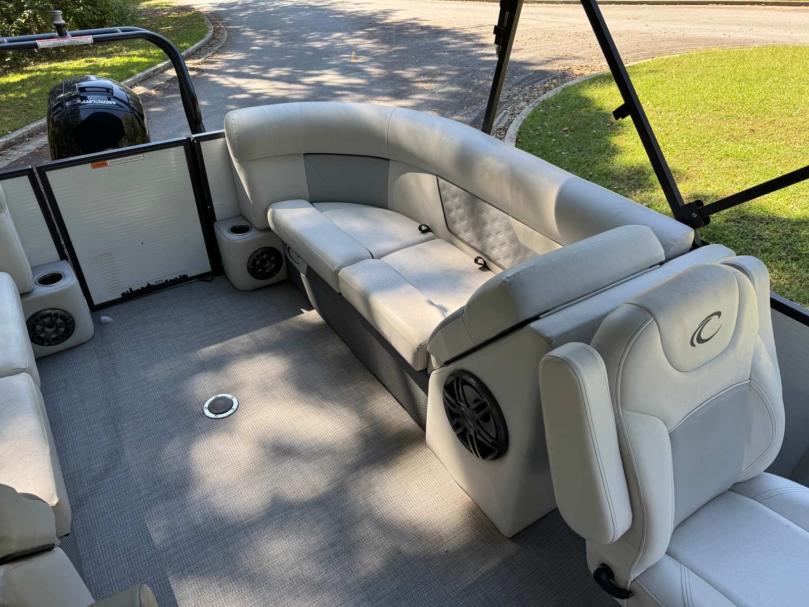 The 2022 Crest 220 DLX is a spacious and versatile pontoon boat, measuring just over 23 feet in length. Its generous size provides ample room for passengers to stretch out and enjoy the ride, making it an excellent choice for social gatherings, leisurely cruises, or adventurous days on the lake. As a used pontoon boat, this model has been well-maintained and is ready to offer years of reliable service to its next owner. The Crest 220 DLX’s sleek design and modern lines ensure you’ll turn heads wherever you go, while its thoughtful layout maximizes both comfort and functionality.