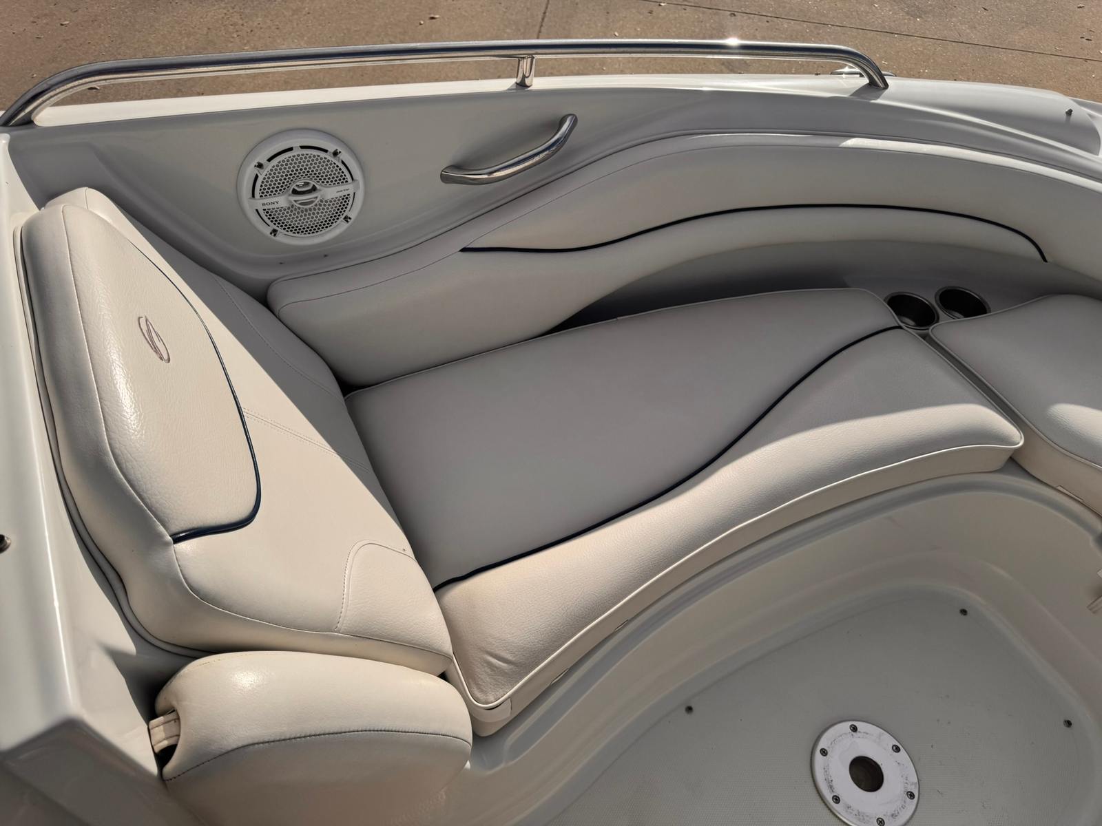 Under the hood, the Crownline 220 EX is powered by a single engine boasting an impressive 260 horsepower. With only 235 engine hours, this Bowrider has plenty of life left for countless adventures. The robust engine ensures smooth acceleration, responsive handling, and reliable power whether you’re towing water toys or simply enjoying a brisk cruise. The 220 EX’s hull design is engineered for stability and agility, allowing you to navigate choppy waters with confidence and ease. If you’re looking for a Crownline boat for sale that combines sporty performance with dependable engineering, this model is sure to impress.
