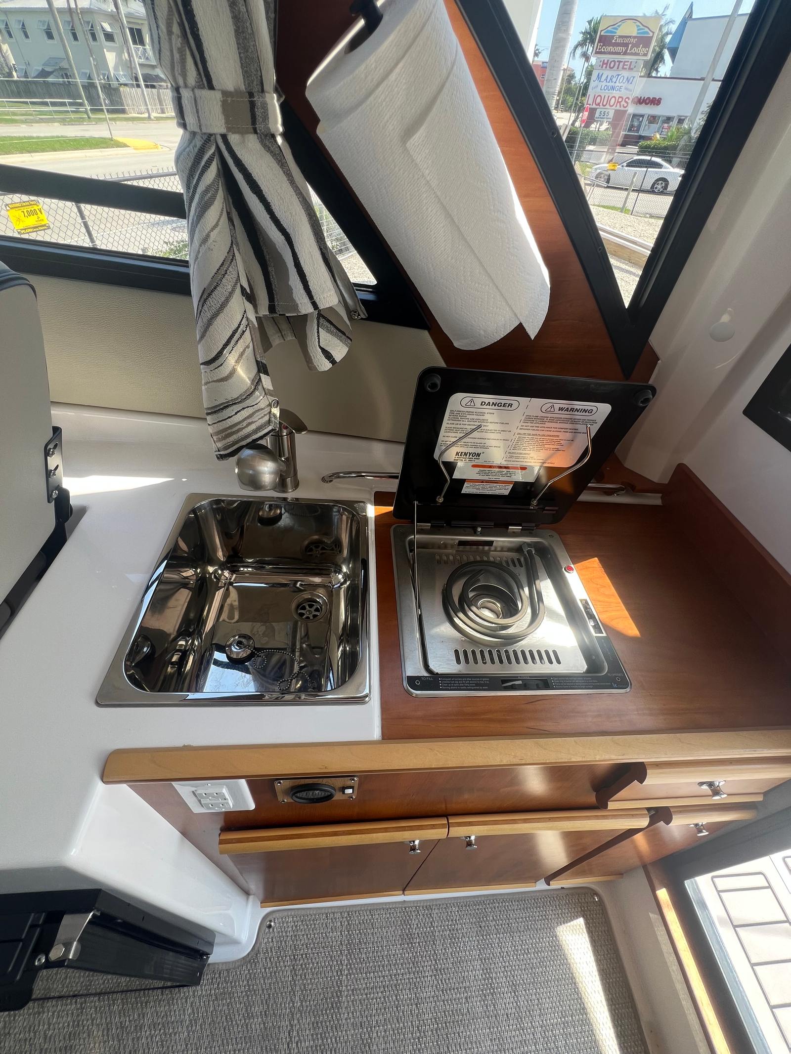 At the heart of the Cutwater C-248 C Coupe is a single, powerful engine delivering an impressive 250 horsepower. This setup provides the perfect blend of speed, agility, and fuel efficiency, allowing you to cruise effortlessly across open water or navigate tight harbors with confidence. The engine’s low hours mean you can look forward to many seasons of reliable performance, whether you are chasing the horizon or simply enjoying a leisurely ride. The responsive handling and smooth acceleration make this coupe boat for sale a joy to pilot, ensuring every journey is as enjoyable as the destination.