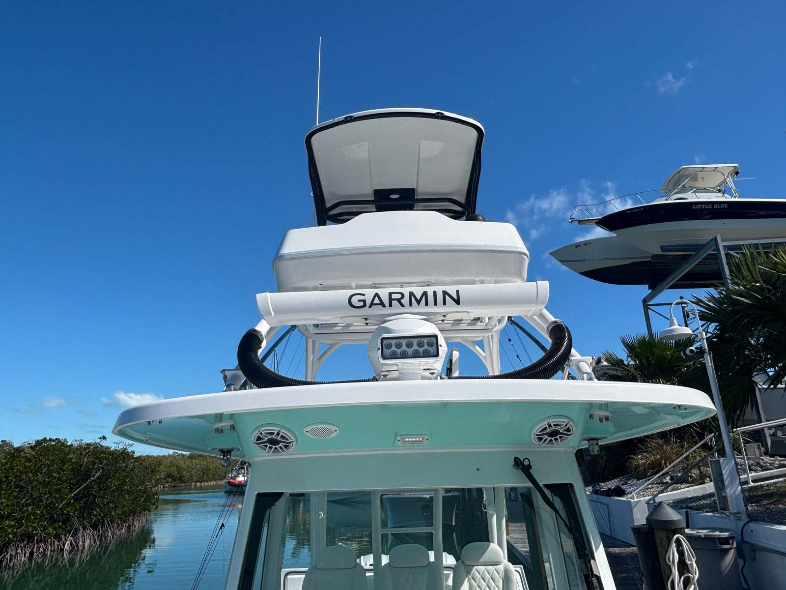 Powering the Everglades 335 CC are two high-performance engines, delivering a combined 850 horsepower. This impressive power package ensures exhilarating acceleration, smooth cruising, and the ability to reach your favorite destinations quickly and efficiently. The twin-engine setup not only provides outstanding speed and agility but also enhances maneuverability and safety, giving you confidence whether you’re navigating open waters or docking at your favorite marina. With 850 horsepower at your command, this center console boat for sale is built for those who crave excitement and reliability on every journey.