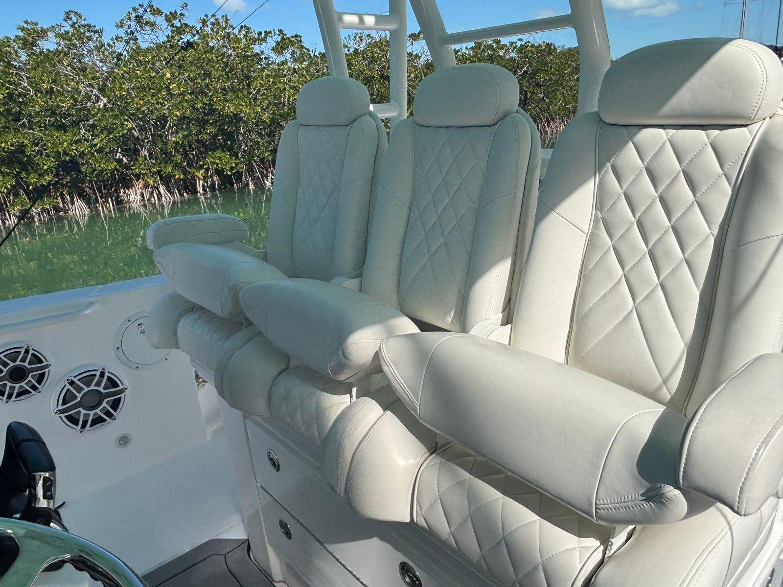 The 2021 Everglades 335 CC shines in a variety of scenarios, making it the ultimate choice for those seeking versatility and performance. For families, this center console boat for sale provides a safe and comfortable environment for day trips, water sports, and picnics on the water. Anglers will appreciate the spacious deck, ample storage for tackle and equipment, and the ability to reach prime fishing grounds quickly and efficiently.If you’re looking for a boat that can handle luxury getaways, the Everglades 335 CC delivers with its stylish design and premium features. Imagine cruising to secluded coves, hosting friends for a sunset cocktail cruise, or exploring new destinations with confidence and style. This Everglades boat for sale is built to adapt to your lifestyle, offering endless possibilities for fun and adventure.