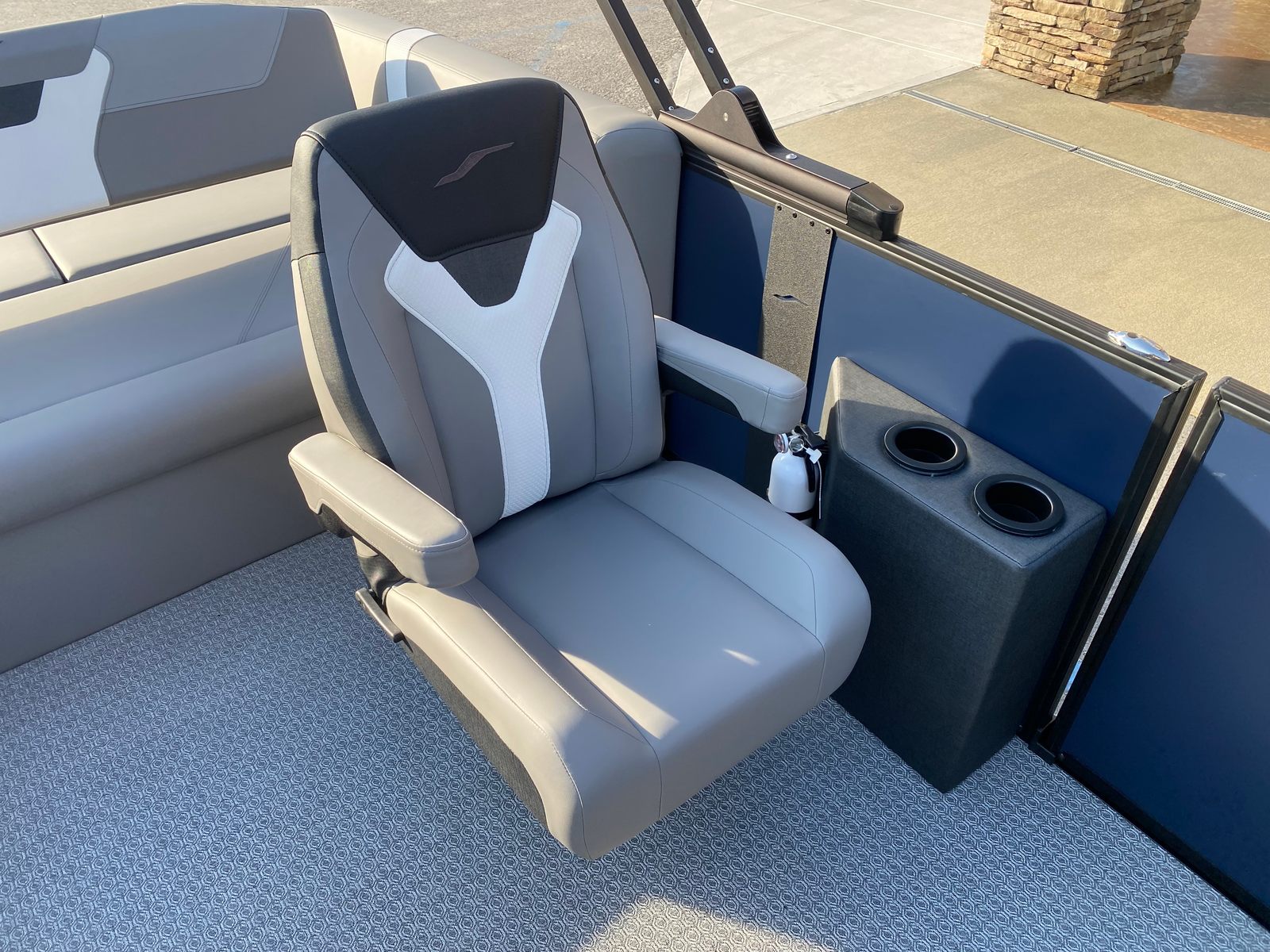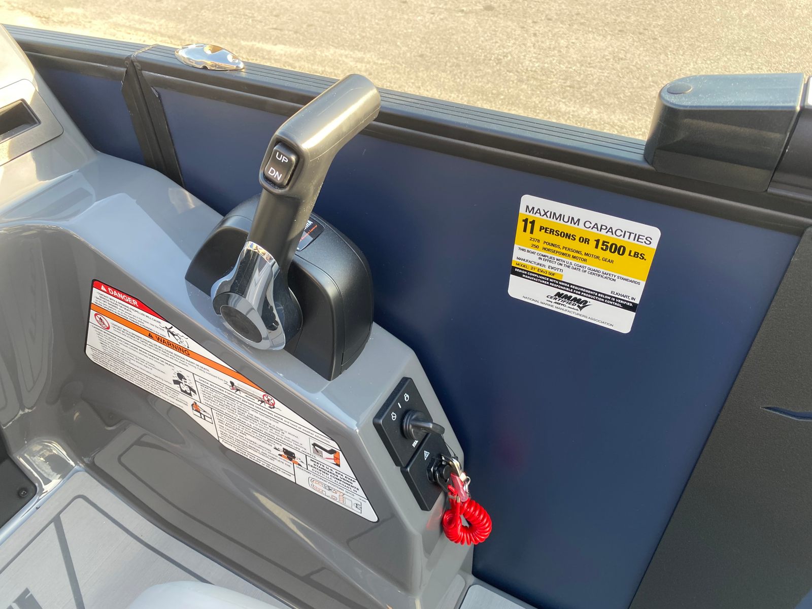Step aboard the Evotti 521 CS and discover a host of special features designed to enhance your boating experience. The Panel Platinum Blue Satin and Panel Accent Pearl White Gloss create a striking visual appeal, while the Canvas Black provides stylish protection from the elements. Inside, the Base Vinyl Steel Gray upholstery offers both comfort and durability, complemented by the Steel Gray Evolution Flooring for a modern, easy-to-clean surface.A single battery powers the boat’s electrical systems, ensuring reliable operation throughout your adventures. The Garmin 943 with 5" gauges delivers advanced navigation and monitoring capabilities, keeping you informed and in control at all times. With the Yamaha F200XD2 Mechanical White engine and Prerig Yamaha Mechanical - 500 Series, you can expect seamless performance and straightforward maintenance. Single Engine Rigging & Prop further simplifies operation, making this pontoon boat accessible to both seasoned boaters and newcomers alike.