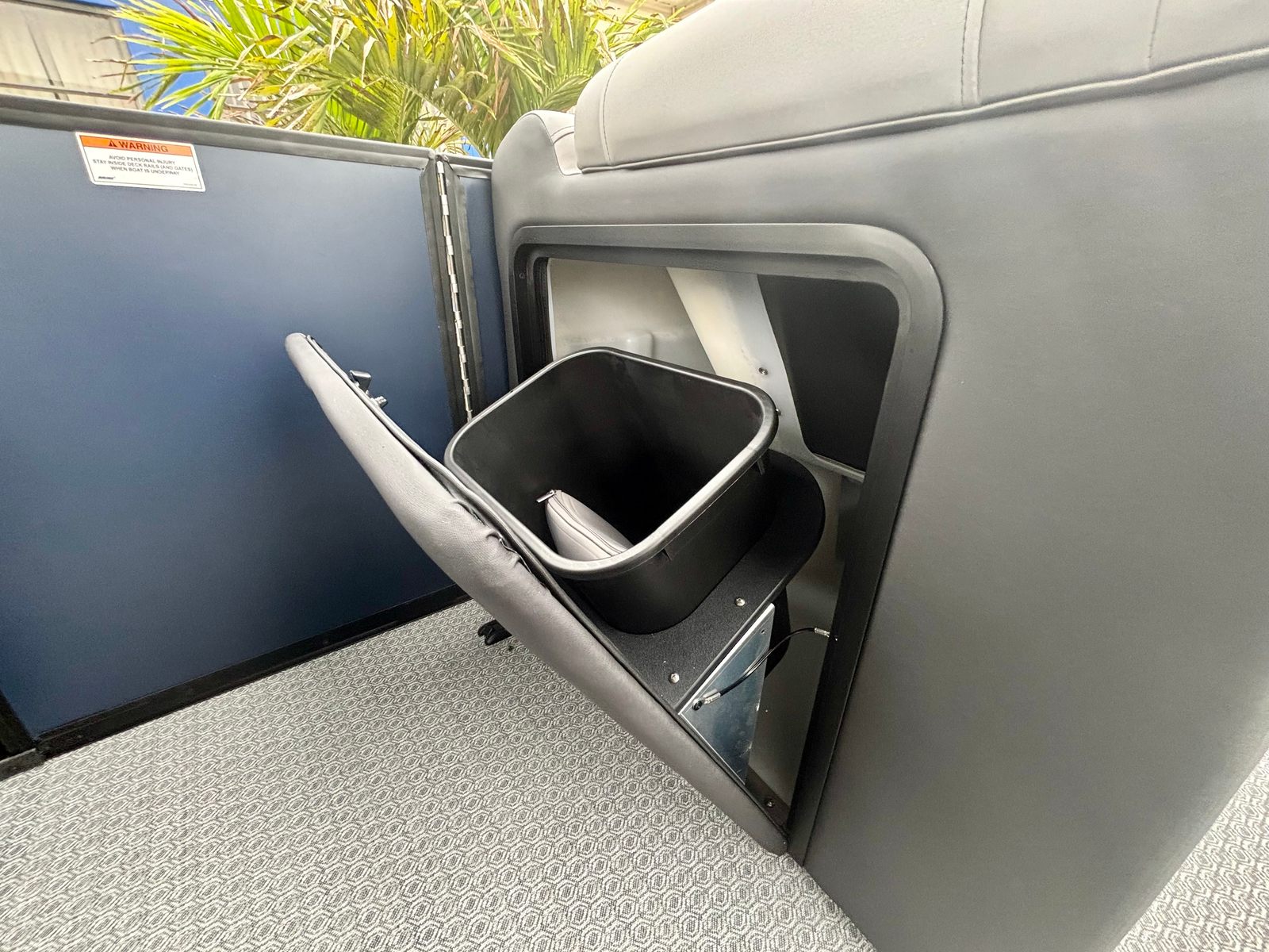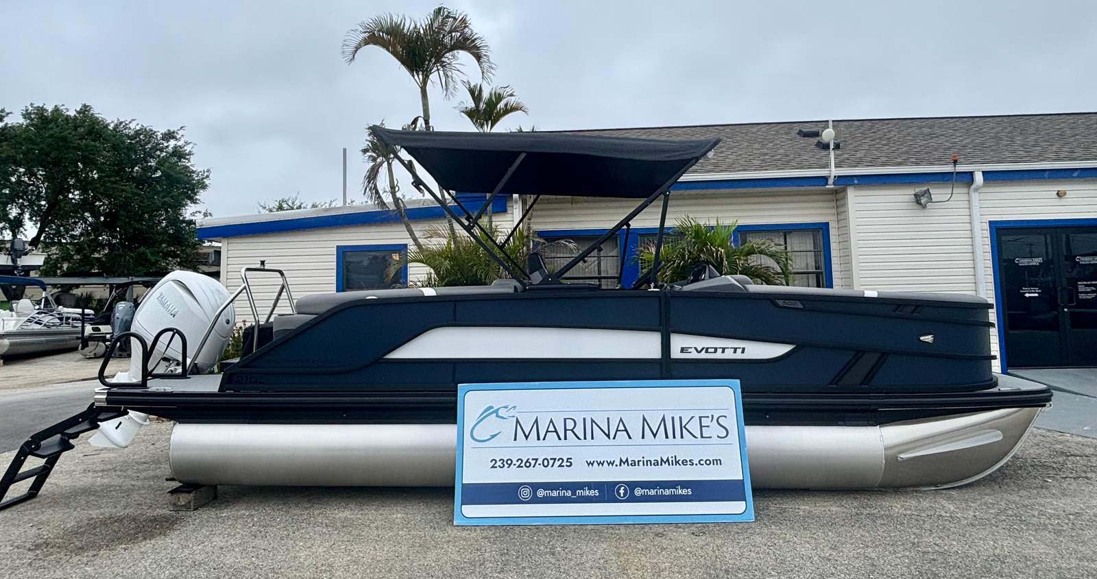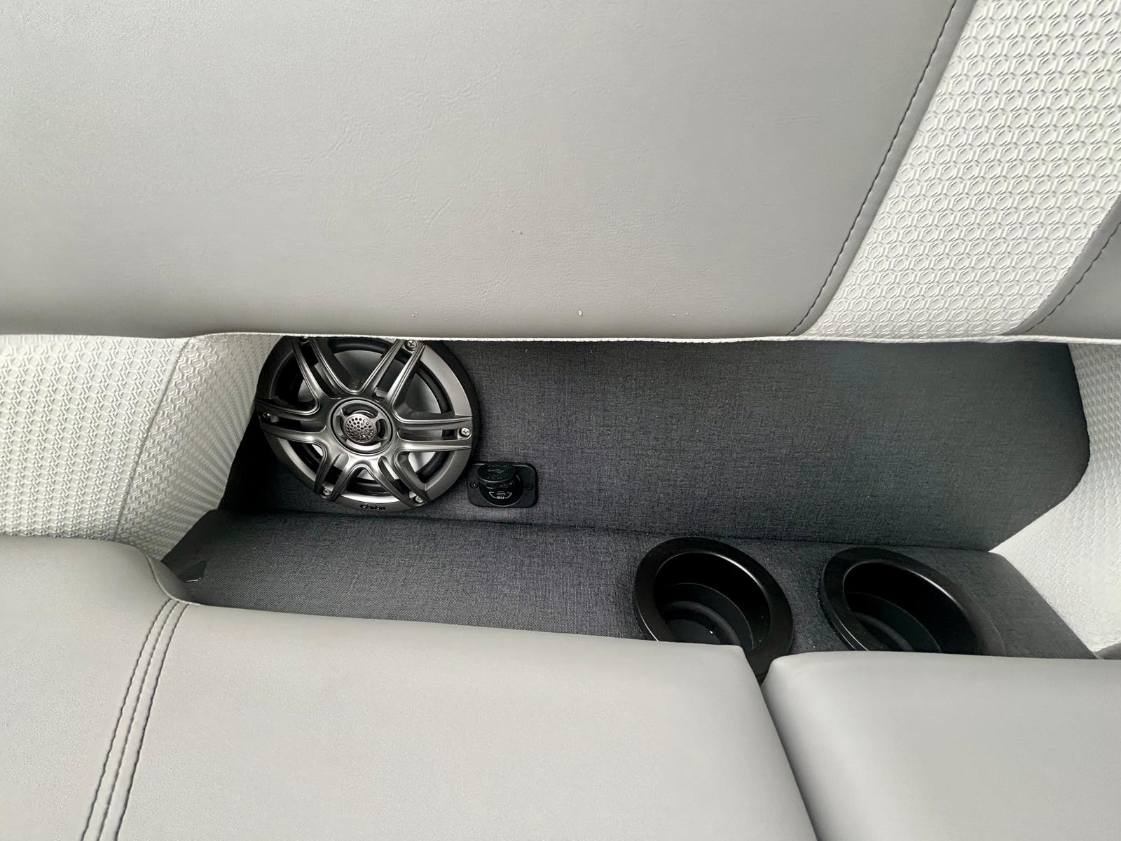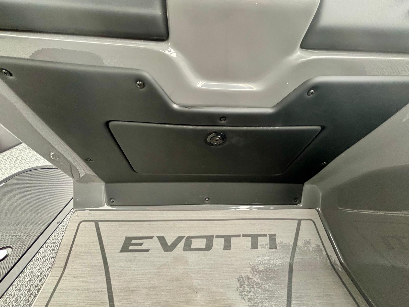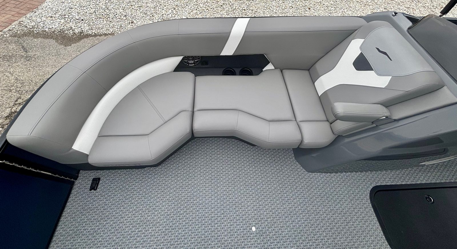 The 2026 Evotti 521 QL pontoon is packed with premium features that enhance both its functionality and visual appeal. The Panel Platinum Blue Satin and Panel Accent Pearl White Gloss create a striking exterior that turns heads at every marina. Step aboard and you are greeted by the luxurious Base Vinyl Steel Gray upholstery, which offers both comfort and durability for all your guests. The Steel Gray Evolution Flooring not only adds a touch of sophistication but also provides a non-slip, easy-to-clean surface that is perfect for active days on the water.For the tech-savvy boater, the Garmin 943 with 5" Gauges delivers advanced navigation and real-time data at your fingertips, ensuring you stay informed and on course. The Clarion Head Unit & Speakers set the mood with high-quality audio, allowing you to enjoy your favorite playlists as you cruise. The thoughtfully designed windscreen offers protection from the elements, enhancing comfort during every journey.
