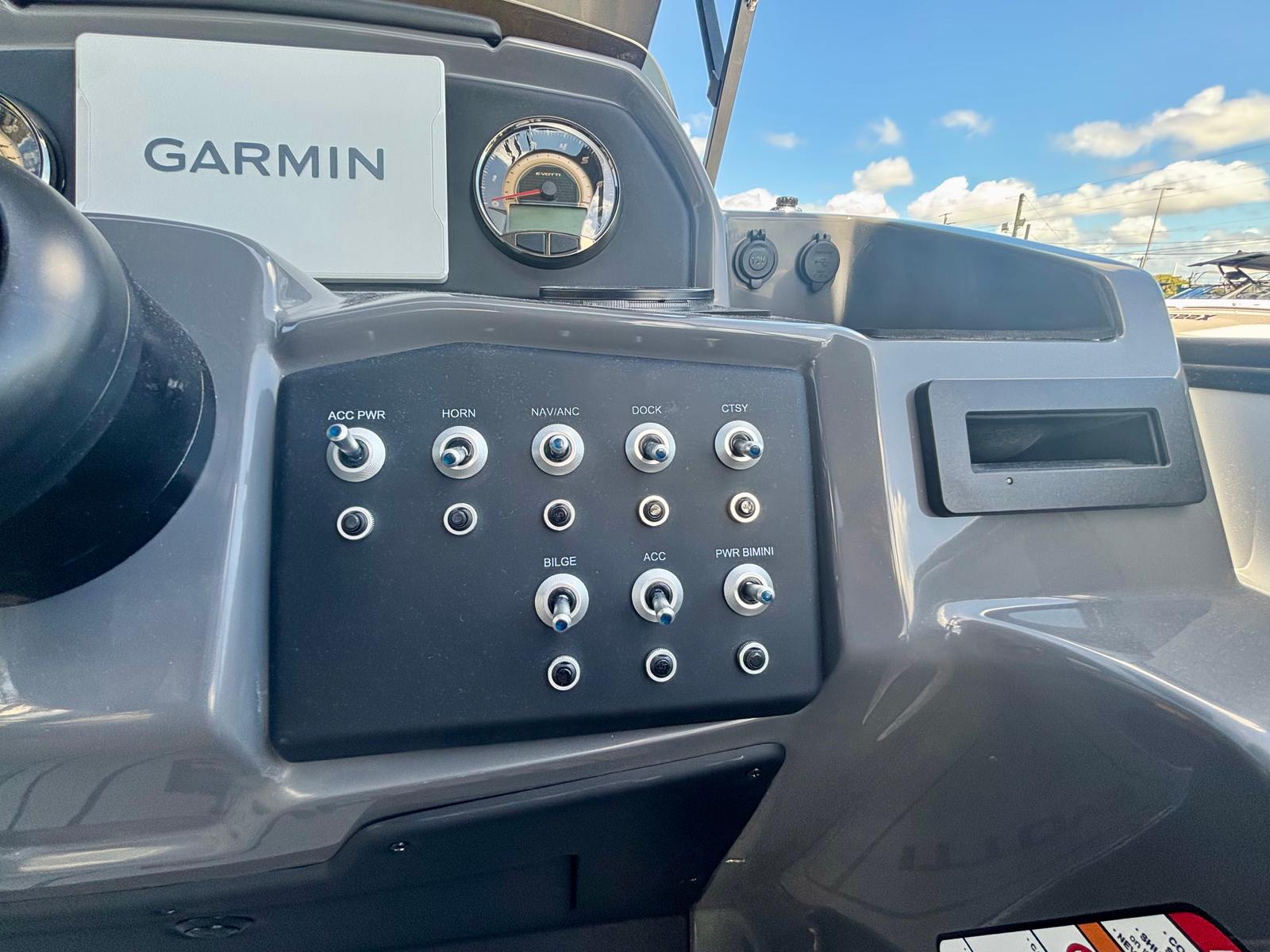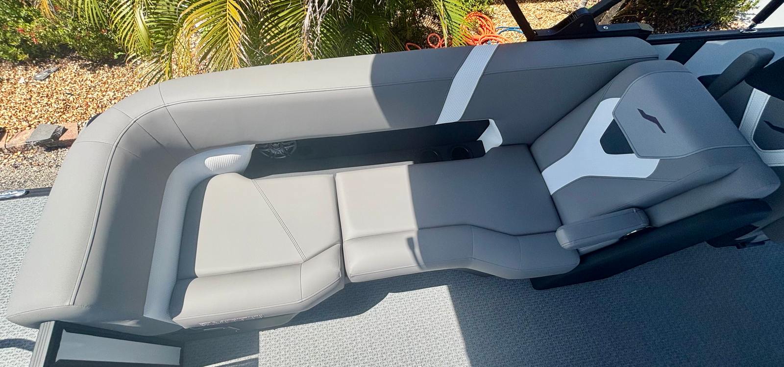 The Evotti 523 QL is not just about looks and performance; it is also engineered for convenience and ease of use. The single engine configuration simplifies maintenance and operation, making it an excellent choice for both seasoned boaters and newcomers alike. The thoughtfully designed layout provides ample storage for all your gear, water toys, and picnic essentials, keeping the deck clutter-free and organized.Docking and maneuvering are a breeze thanks to the responsive Yamaha engine and intuitive controls, so you can spend less time worrying about logistics and more time enjoying the water. The durable flooring and high-quality vinyl seating are easy to clean and maintain, ensuring your pontoon stays looking great season after season.