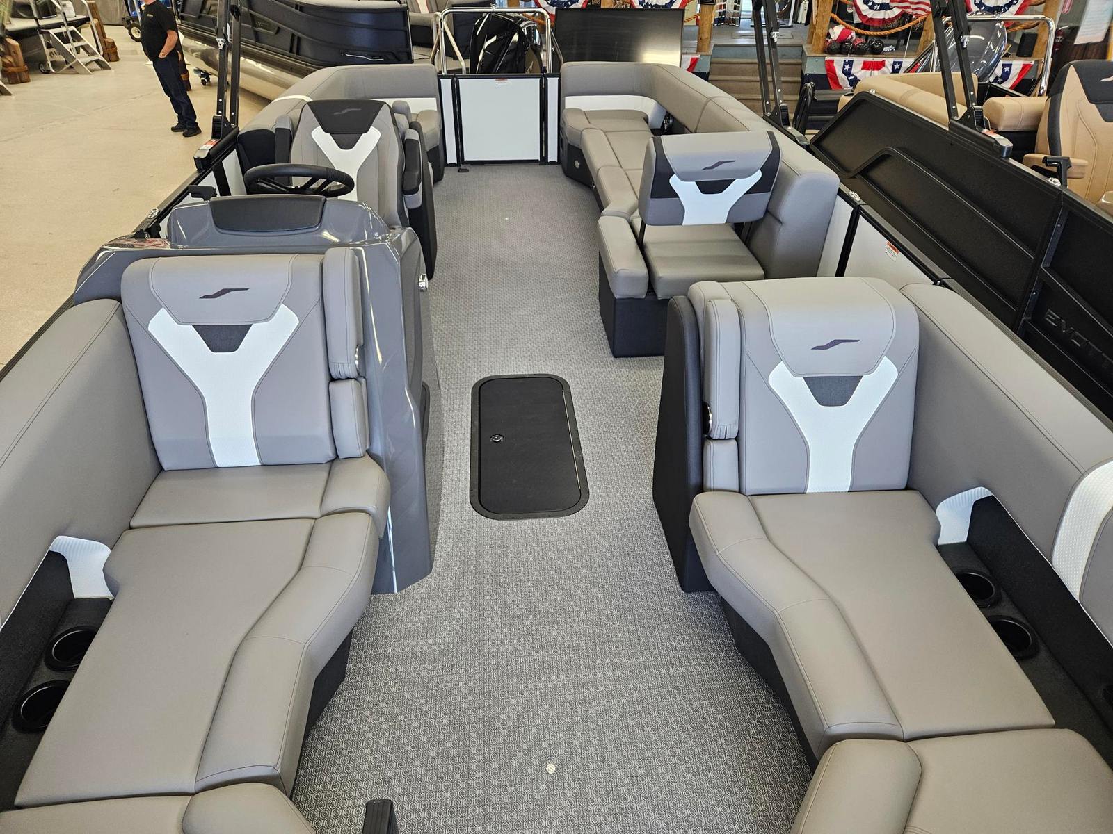 In summary, the 2026 Evotti 523 QL is a new pontoon boat for sale that combines cutting-edge design, powerful performance, and luxurious comfort in one exceptional package. With standout features like the Panel Pearl White Gloss, Panel Accent Evolution Red Satin, Canvas Black, Base Vinyl Steel Gray, Steel Gray Evolution Flooring, Port Bench with Omni Chaise 523QL, dual battery system, and Mercury 300XL Mechanical Black engine, this Evotti boat for sale is ready to elevate your time on the water.If you are searching for a pontoon boat that offers both style and substance, the Evotti 523 QL is the perfect choice. Discover the joy of boating with a vessel that is as practical as it is beautiful. Contact your local dealer today to learn more about the Evotti 523 QL and start your next adventure on the water!