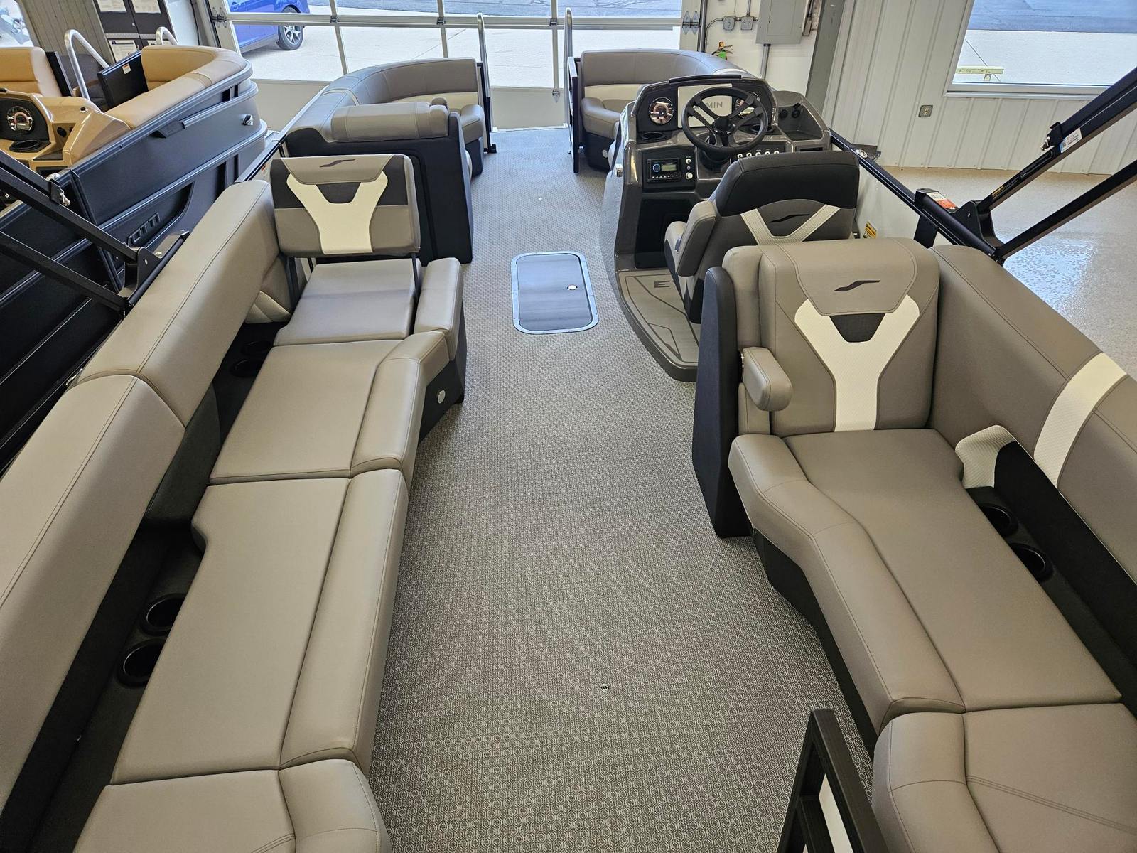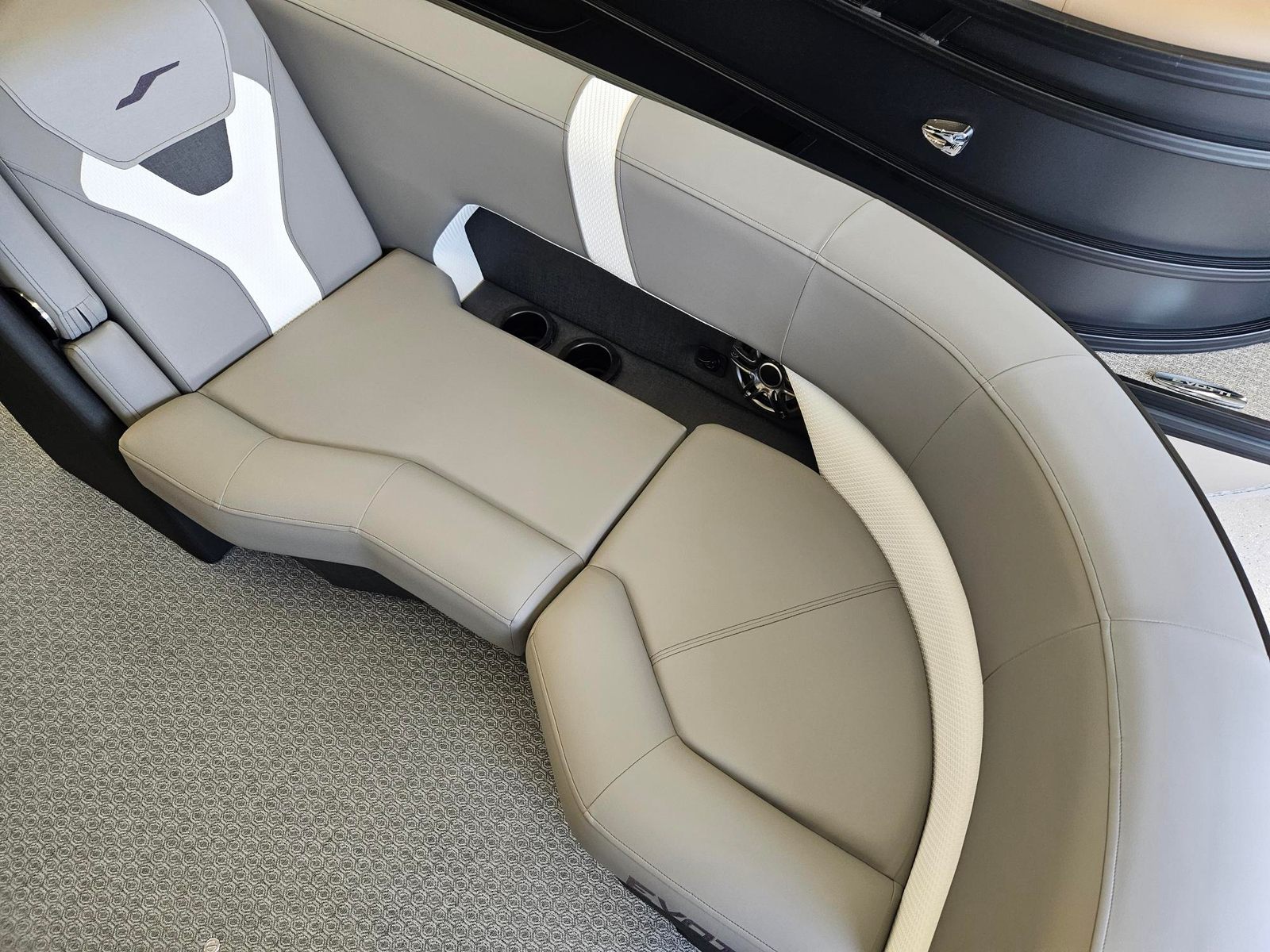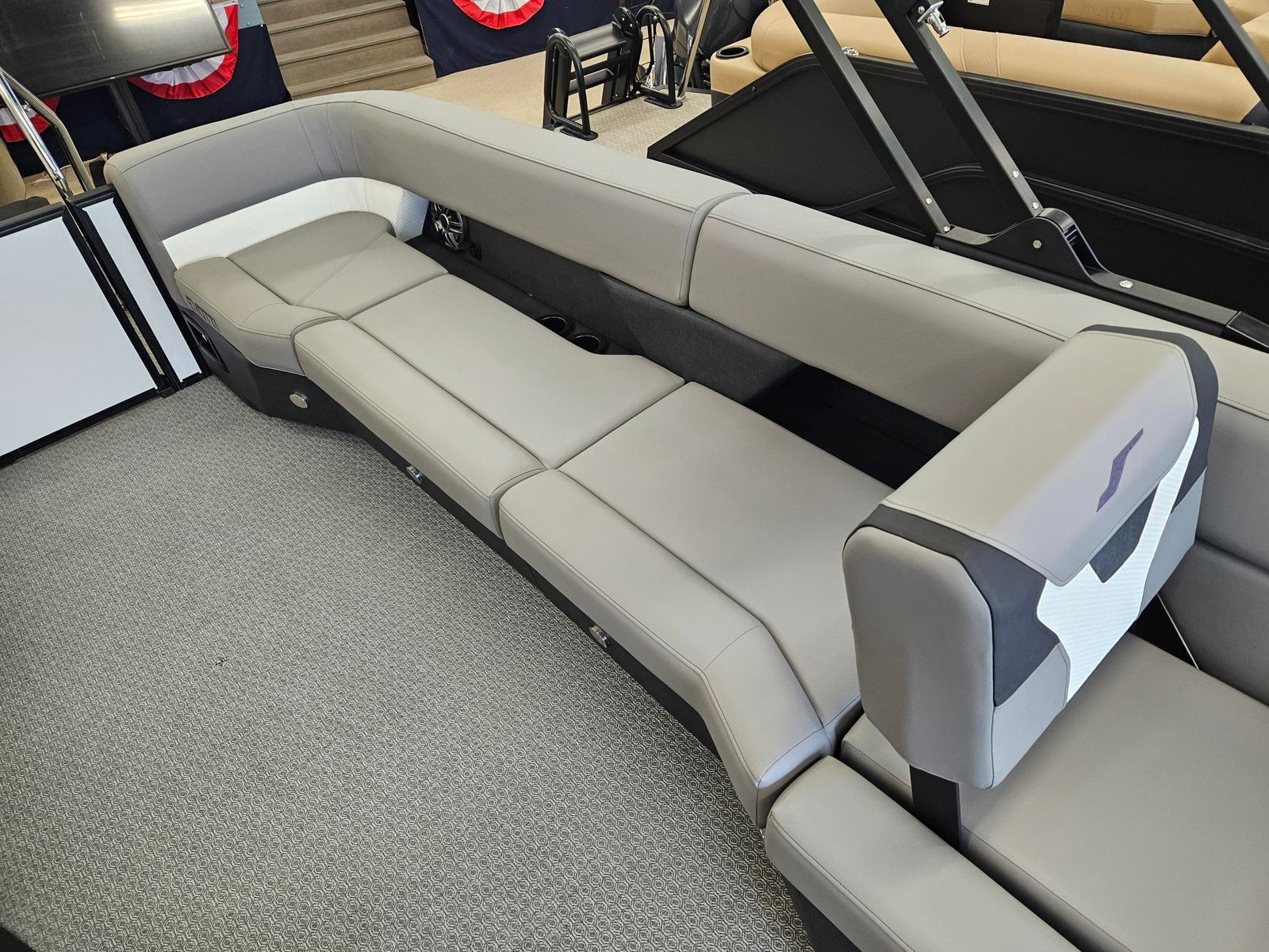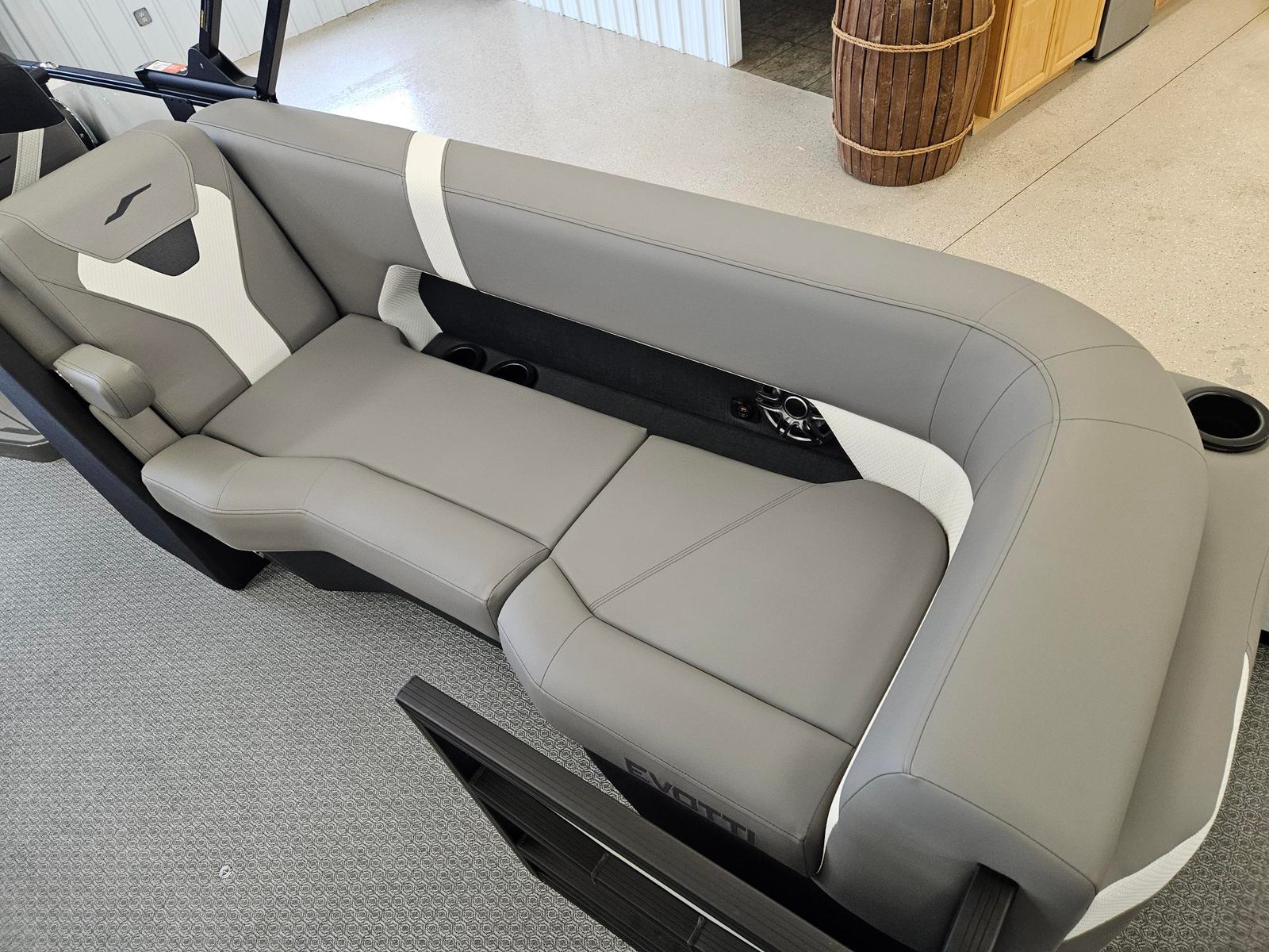 Step aboard the Evotti 523 QL and experience a world of premium features designed for comfort and convenience. The Panel Pearl White Gloss and Panel Accent Evolution Red Satin create a striking visual impression, while the Canvas Black provides both style and protection from the elements. The Base Vinyl Steel Gray upholstery is not only visually appealing but also engineered for durability and easy maintenance, making it ideal for active boaters.The Steel Gray Evolution Flooring adds a touch of sophistication underfoot, offering a non-slip surface that is both practical and attractive. The Port Bench with Omni Chaise 523QL invites you to relax in style, whether you are soaking up the sun or enjoying a quiet moment on the water. With the dual battery system, you can power your onboard electronics and accessories with confidence, knowing you have backup energy for longer days on the lake.