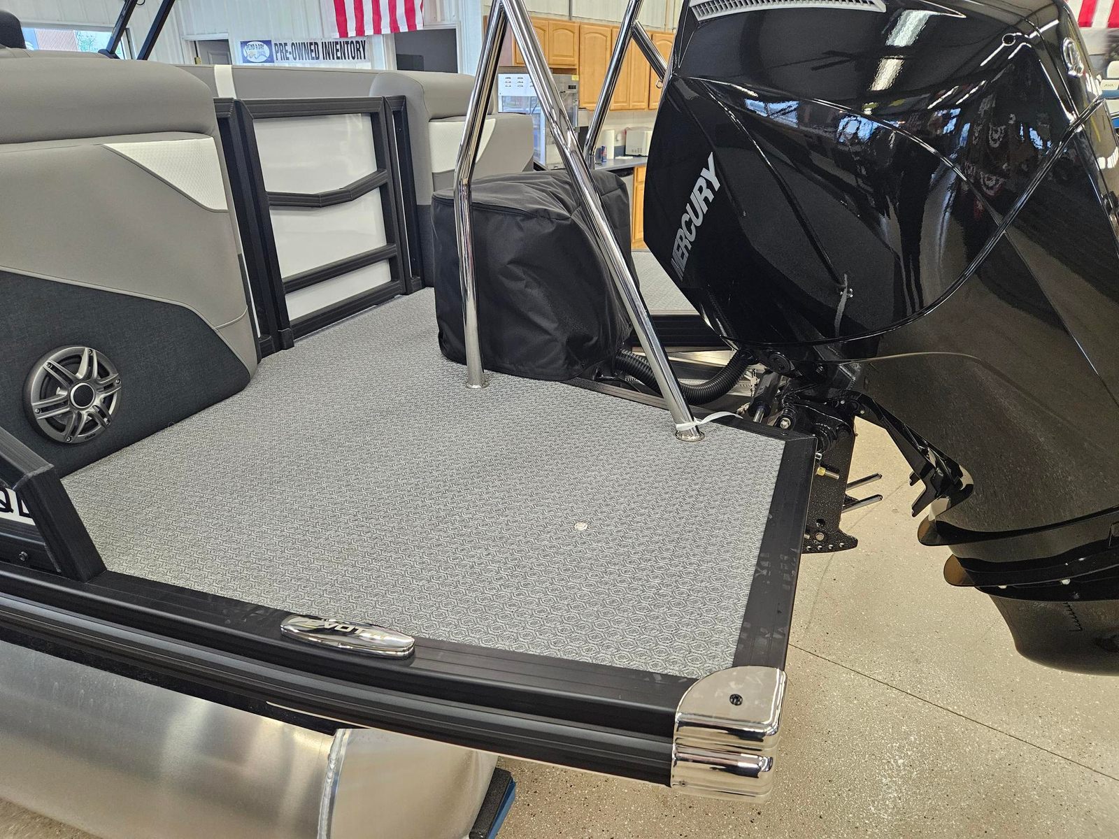 Beyond its stunning looks and exhilarating performance, the Evotti 523 QL pontoon boat offers a range of practical benefits that make ownership a breeze. The 25.5-foot length provides generous storage options for gear, water toys, and personal items, keeping the deck clutter-free and organized. The sturdy flooring and durable upholstery are easy to clean, so you can spend more time enjoying the water and less time on maintenance.Docking and maneuvering are simplified thanks to the responsive Mercury 300XL engine and well-designed helm controls. The dual battery system ensures you have reliable power for all your needs, from navigation lights to sound systems, enhancing safety and convenience during your adventures. The thoughtful layout and premium materials make this Evotti boat for sale a smart investment for boaters who value both form and function.