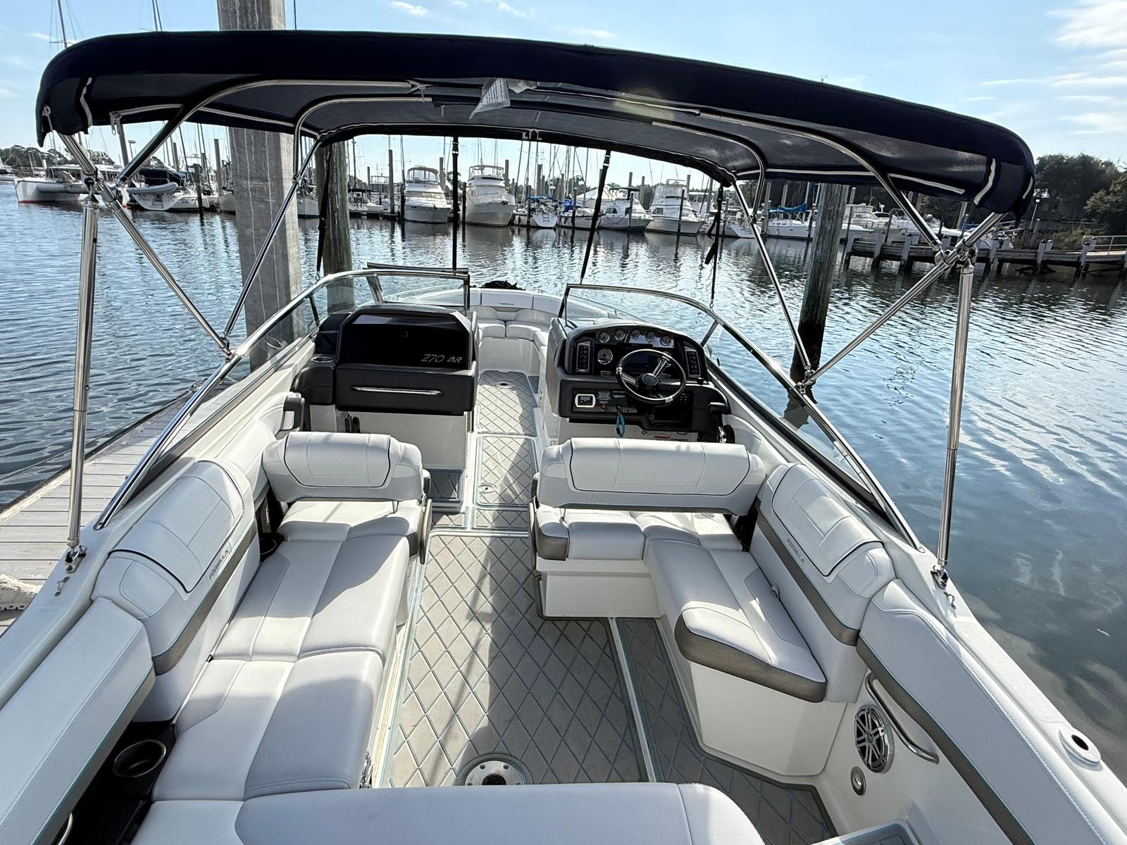 Owning a Formula 270 BR means embracing a lifestyle of fun, relaxation, and adventure. This bowrider boat for sale is designed to maximize enjoyment on the water, with comfortable seating arrangements that encourage conversation and connection. The open layout allows for easy movement throughout the boat, making it simple to transition from sunbathing on the bow to enjoying refreshments in the cockpit. The 270 BR’s thoughtful design ensures that every passenger can find their perfect spot to unwind, whether you are anchored in a quiet cove or cruising along the shoreline.The 430-horsepower engine provides the thrill of speed and the confidence to explore new destinations. With its responsive handling and smooth ride, the Formula 270 BR is equally suited for water sports, leisurely cruises, or spirited runs across the lake. The boat’s versatility means you can tailor each outing to your preferences, creating lasting memories with family and friends.