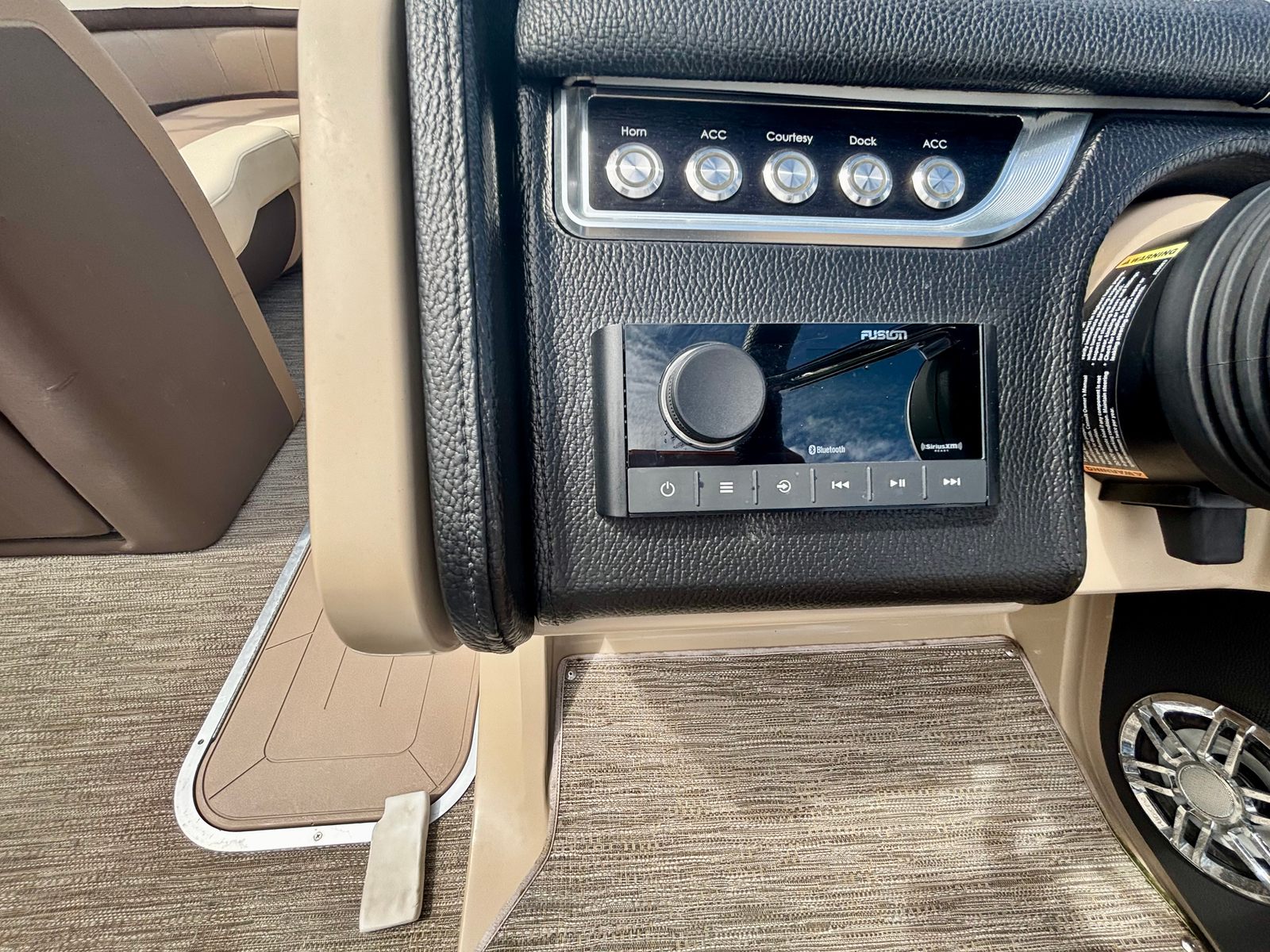 Under the hood, the Godfrey 235 SB is powered by a single engine boasting an impressive 300 horsepower. This robust engine ensures that you’ll have all the power you need for smooth cruising, quick acceleration, and thrilling rides across the lake or river. With 75 engine hours, the motor has been gently used and is ready to deliver reliable performance for years to come. The combination of power and efficiency makes this pontoon boat for sale an ideal choice for those who value both excitement and dependability on the water.