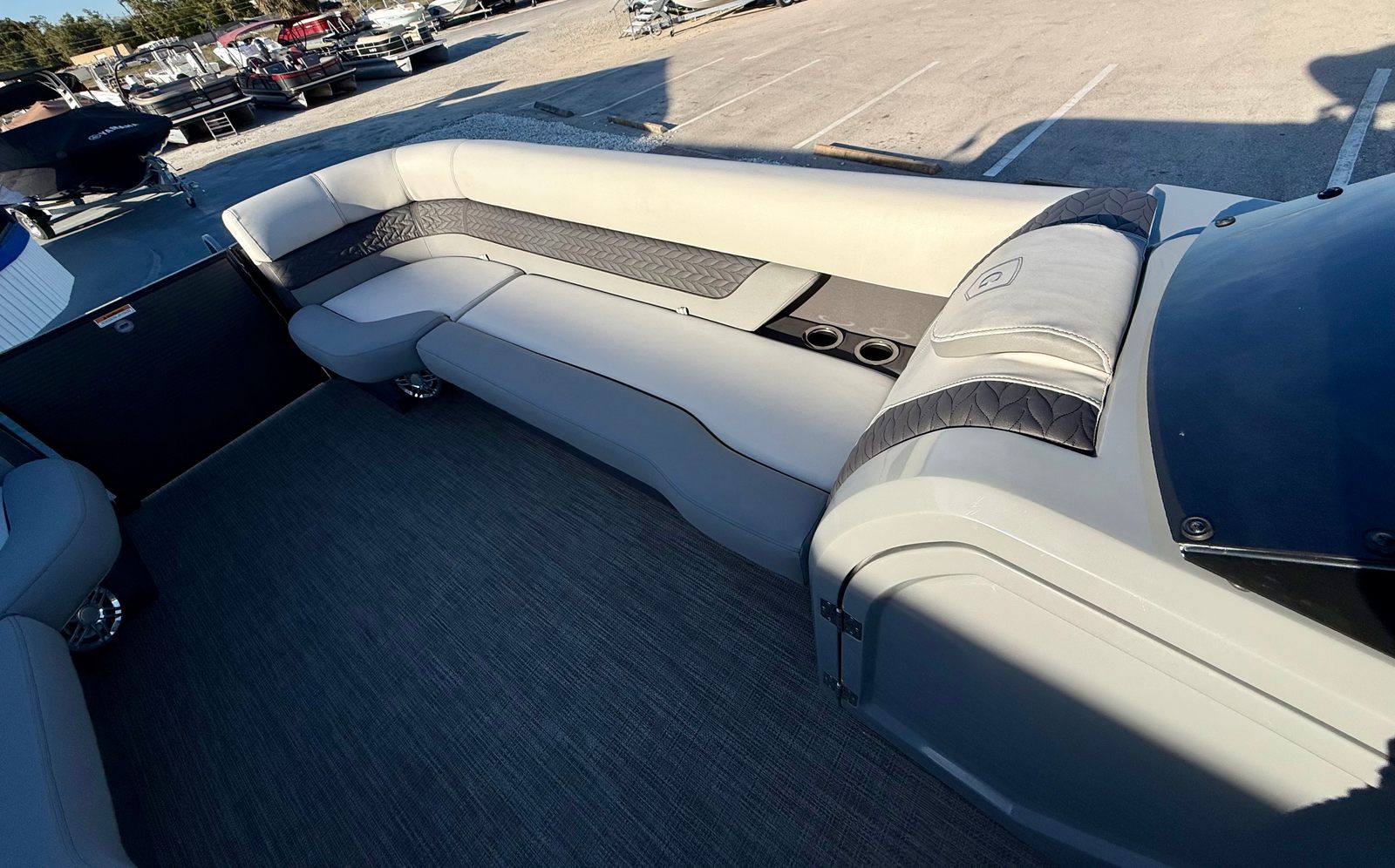 In addition to its recreational appeal, the Godfrey 255 SB offers practical benefits that make ownership easy and enjoyable. The spacious deck provides plenty of room for coolers, gear, and water toys, so you can bring everything you need for a day on the water. The pontoon’s design makes docking and maneuvering straightforward, even in tight spaces, so you can spend less time worrying and more time having fun.Fuel efficiency is another key advantage of the Godfrey 255 SB. The 300-horsepower engine is engineered for optimal performance without sacrificing economy, allowing you to enjoy longer outings without frequent refueling stops. The boat’s durable construction and quality materials ensure that maintenance is straightforward, so you can focus on enjoying your time on the water.