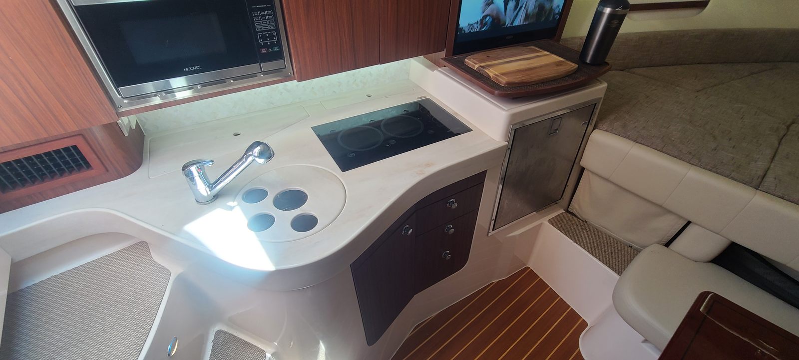 Powered by twin engines delivering a combined 850 horsepower, the Grady-White Express 330 offers exhilarating performance and responsive handling. The dual-engine setup ensures smooth acceleration, impressive top speeds, and enhanced maneuverability, whether you’re navigating tight marinas or heading out to your favorite fishing spot. With only 195 engine hours, these motors promise years of dependable service, giving you confidence every time you set out on the water. The Express 330’s advanced hull design further contributes to a stable, dry ride, even in choppy conditions, making it a standout among fishing boats for sale.