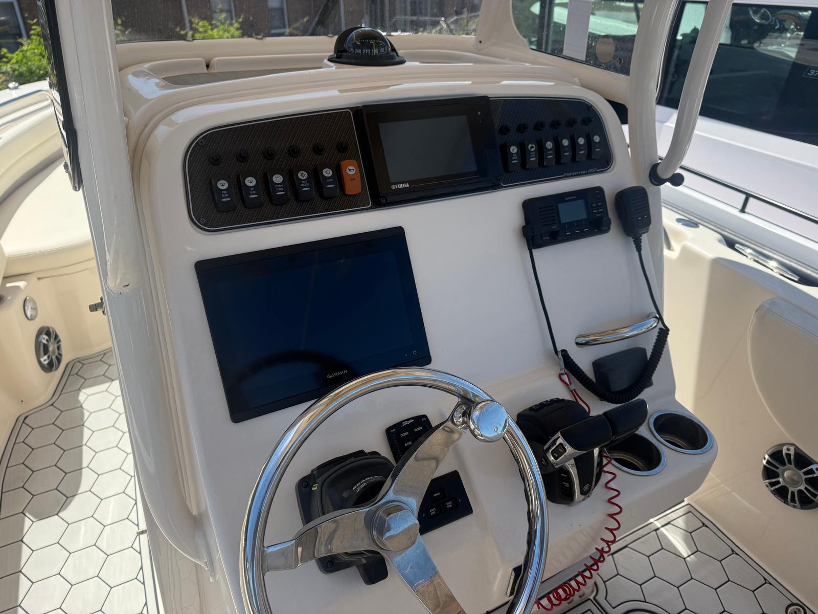 This center console boat for sale is designed with practicality in mind. The Fisherman 257’s layout maximizes usable space, offering plenty of storage for gear, tackle, and personal items. The center console design makes docking and maneuvering a breeze, even for less experienced captains. Its manageable 25-foot length means you can easily trailer the boat to your favorite launch sites or store it when not in use.Fuel efficiency is another highlight, thanks to the modern twin-engine setup that delivers power without sacrificing economy. Whether you’re planning a long day offshore or a quick trip to a nearby island, you’ll appreciate the balance of performance and efficiency that this Grady-White boat provides. Maintenance is straightforward, and the boat’s durable construction ensures it will remain a reliable companion for years to come.