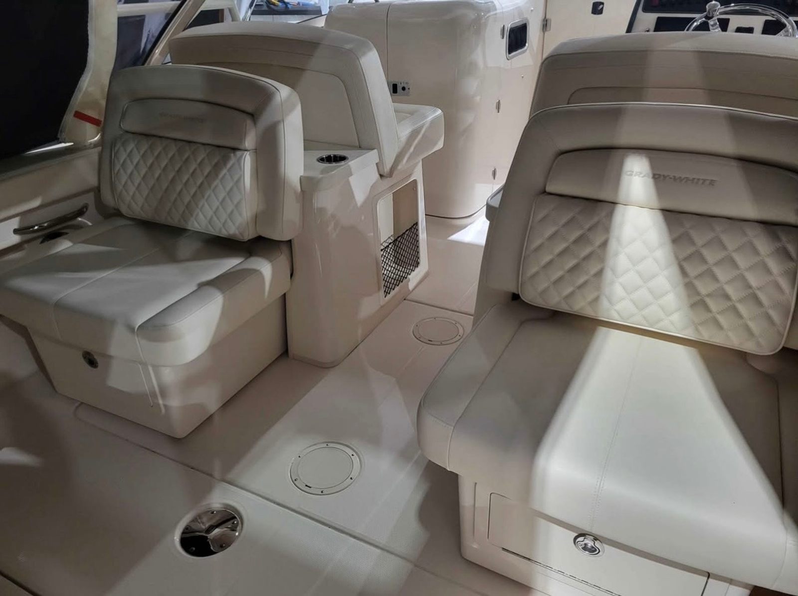 Power and performance are at the heart of the 2025 Grady-White 307 Freedom. Equipped with two powerful engines delivering a combined 700 horsepower, this Dual Console boat is built to handle a variety of water conditions with ease. The twin-engine setup ensures smooth acceleration, impressive top speeds, and reliable handling, making it perfect for both cruising and more spirited adventures offshore. The 307 Freedom’s performance capabilities are enhanced by Grady-White’s renowned hull design, which provides a stable and comfortable ride even in choppy waters. Whether you’re navigating coastal inlets, exploring open bays, or simply enjoying a leisurely cruise, you’ll appreciate the confidence and control that come with this high-performance Grady-White boat for sale.