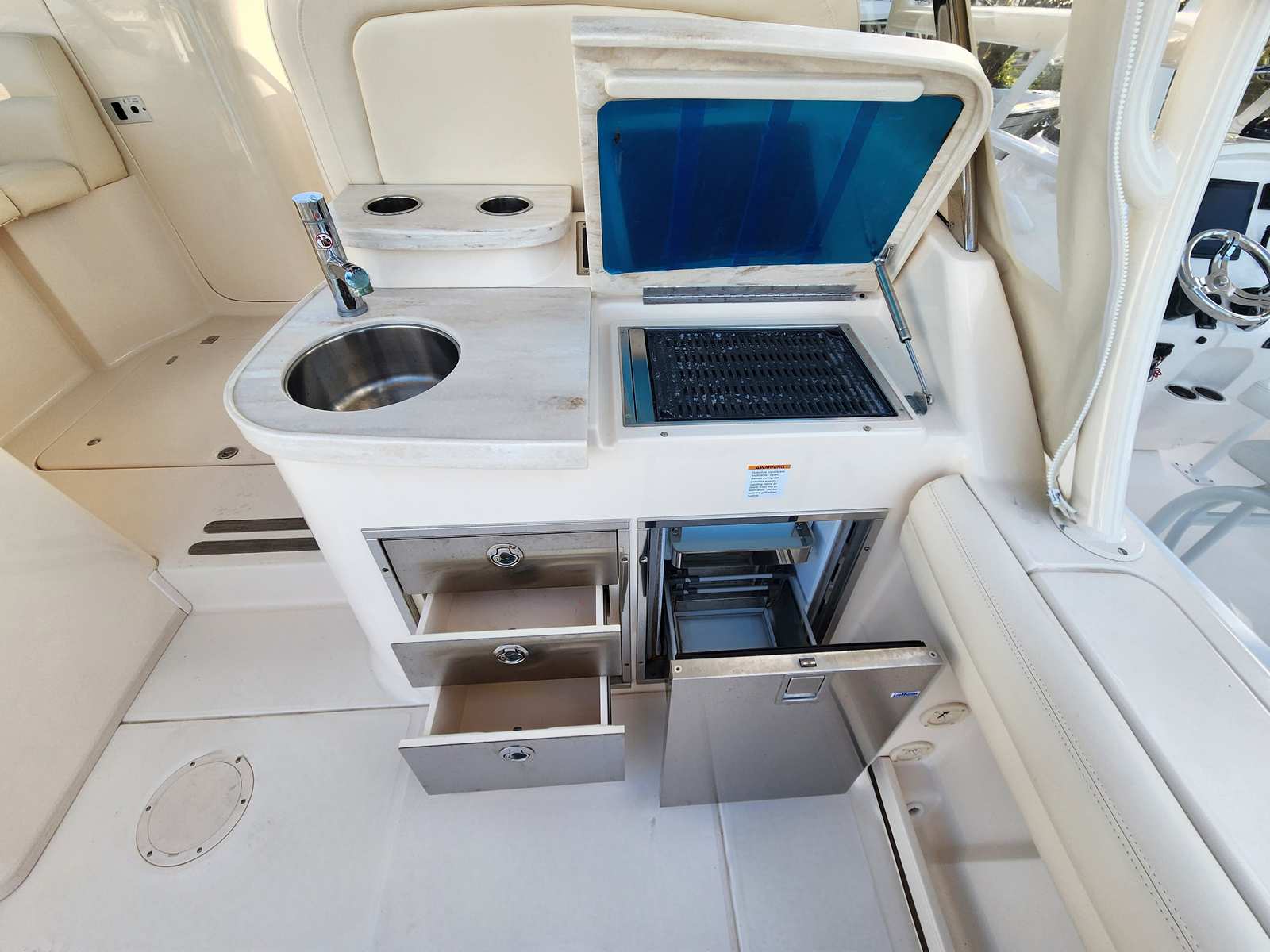 Owning a Grady-White Freedom 335 means enjoying the best of both worlds: thrilling performance and unparalleled comfort. The Dual Console configuration is perfect for socializing, offering open spaces for conversation and relaxation. The plush seating and spacious deck make it easy to host family gatherings, celebrate special occasions, or simply enjoy a peaceful day on the water. The boat’s robust engines provide the power needed for water sports and fast cruising, while the stable hull design ensures a smooth and safe ride. With its combination of luxury and practicality, this Grady-White boat for sale is an investment in fun, adventure, and lasting memories.
