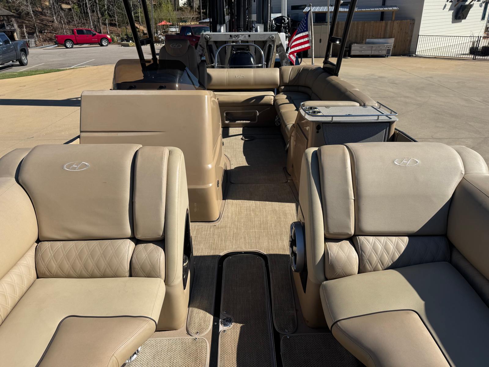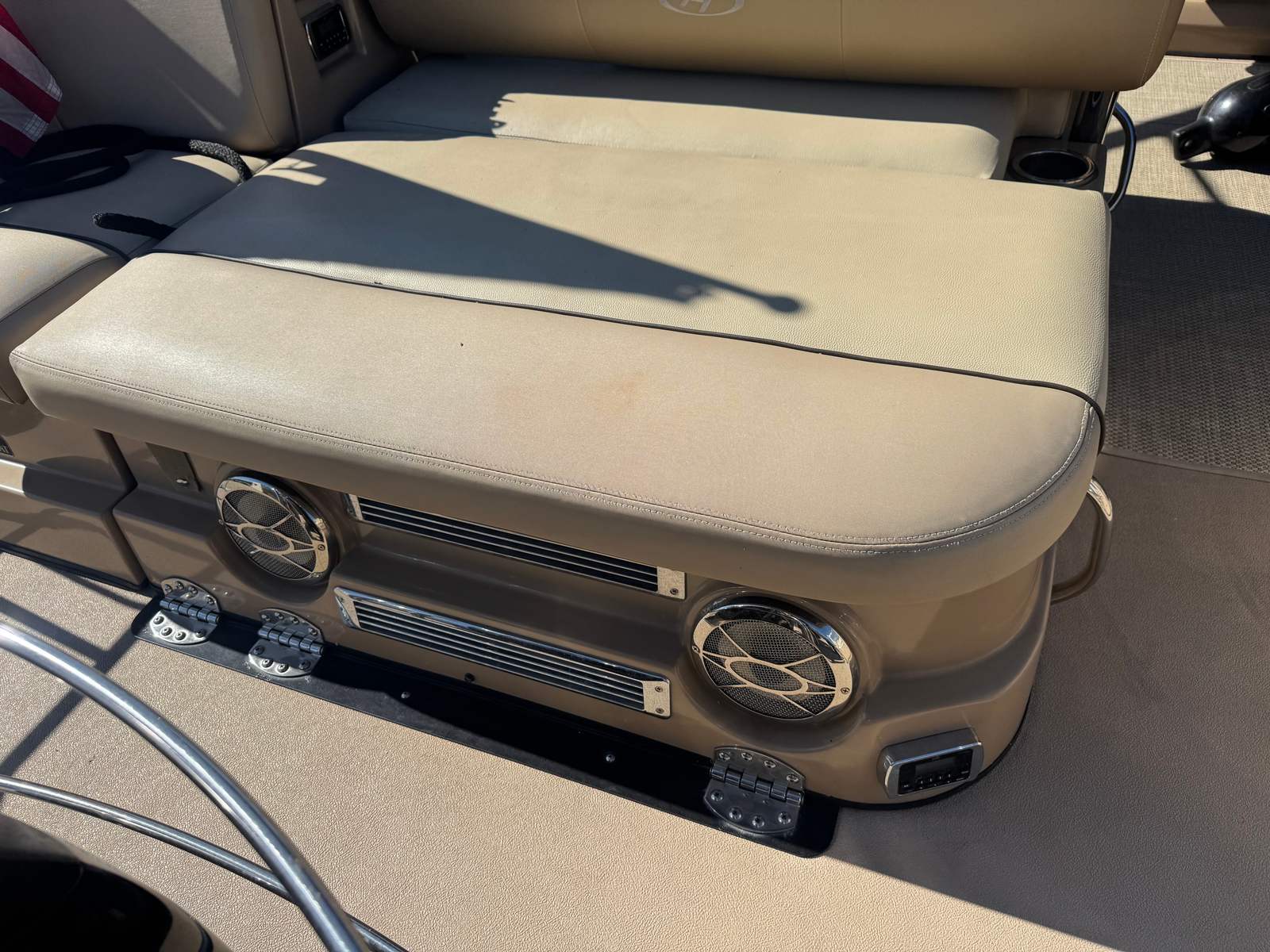 This Harris boat for sale is as practical as it is enjoyable. The pontoon’s generous storage options make it easy to bring along all your essentials, from water toys and fishing gear to picnic supplies and extra towels. The boat’s design also facilitates easy docking and maneuvering, so you can spend less time worrying about logistics and more time enjoying the water.Fuel efficiency is another key advantage of the Grand Mariner 250 SL. The single-engine configuration helps keep operating costs manageable, while still delivering the power and performance you need for a variety of activities. Maintenance is straightforward, making this used pontoon boat an excellent choice for both seasoned boaters and those new to the lifestyle.