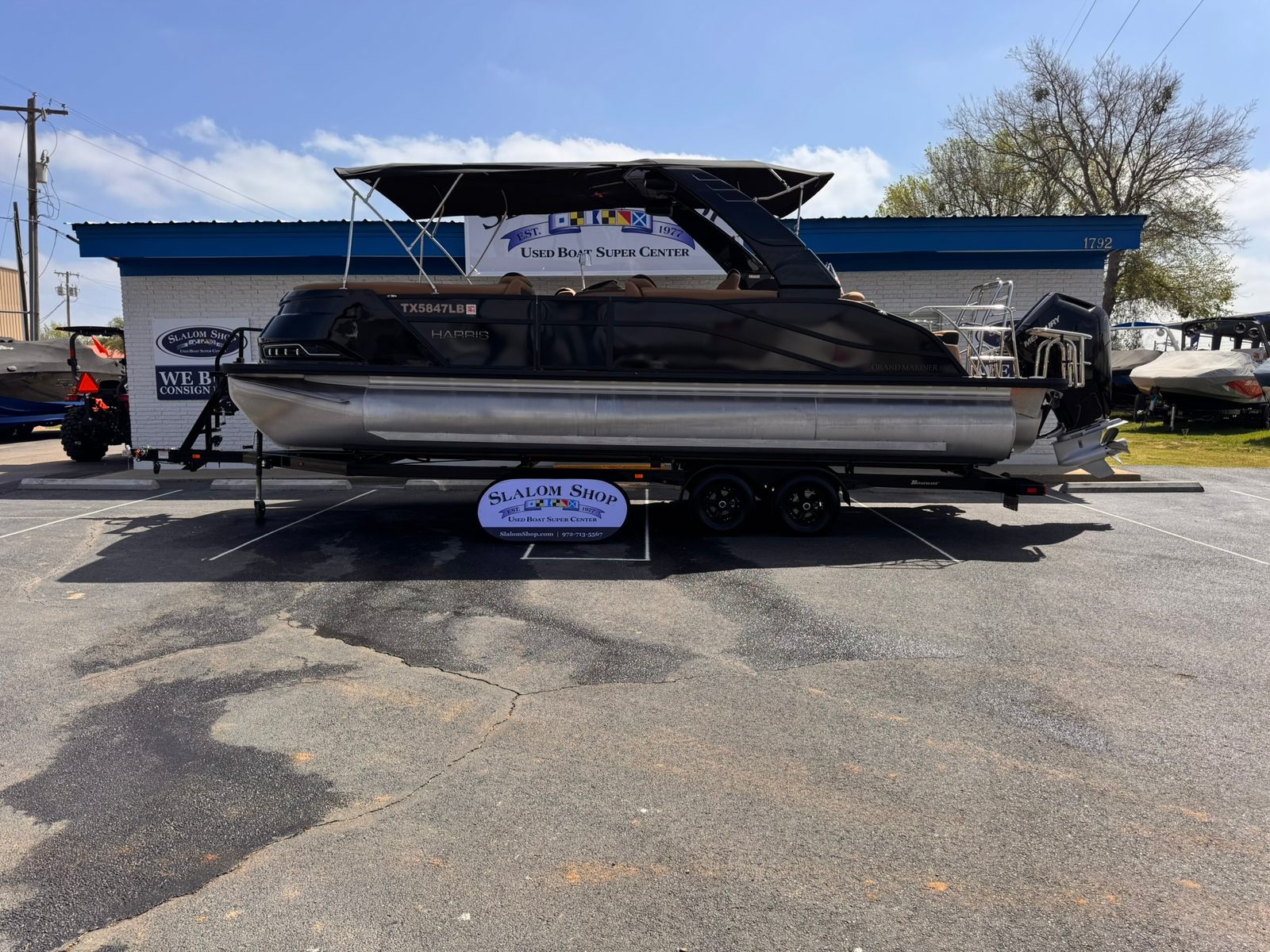 Now available at our Used Boat Super Center in Lewisville, this 2024 Harris Grand Mariner 250 is a top-of-the-line luxury tri-toon built for performance, comfort, and entertaining. Finished with a sleek black fence panel and a rich brown interior, this Grand Mariner is powered by a Mercury V10 400 horsepower outboard with only 19 hours, paired with a 4-blade stainless prop and electric power-assisted steering.