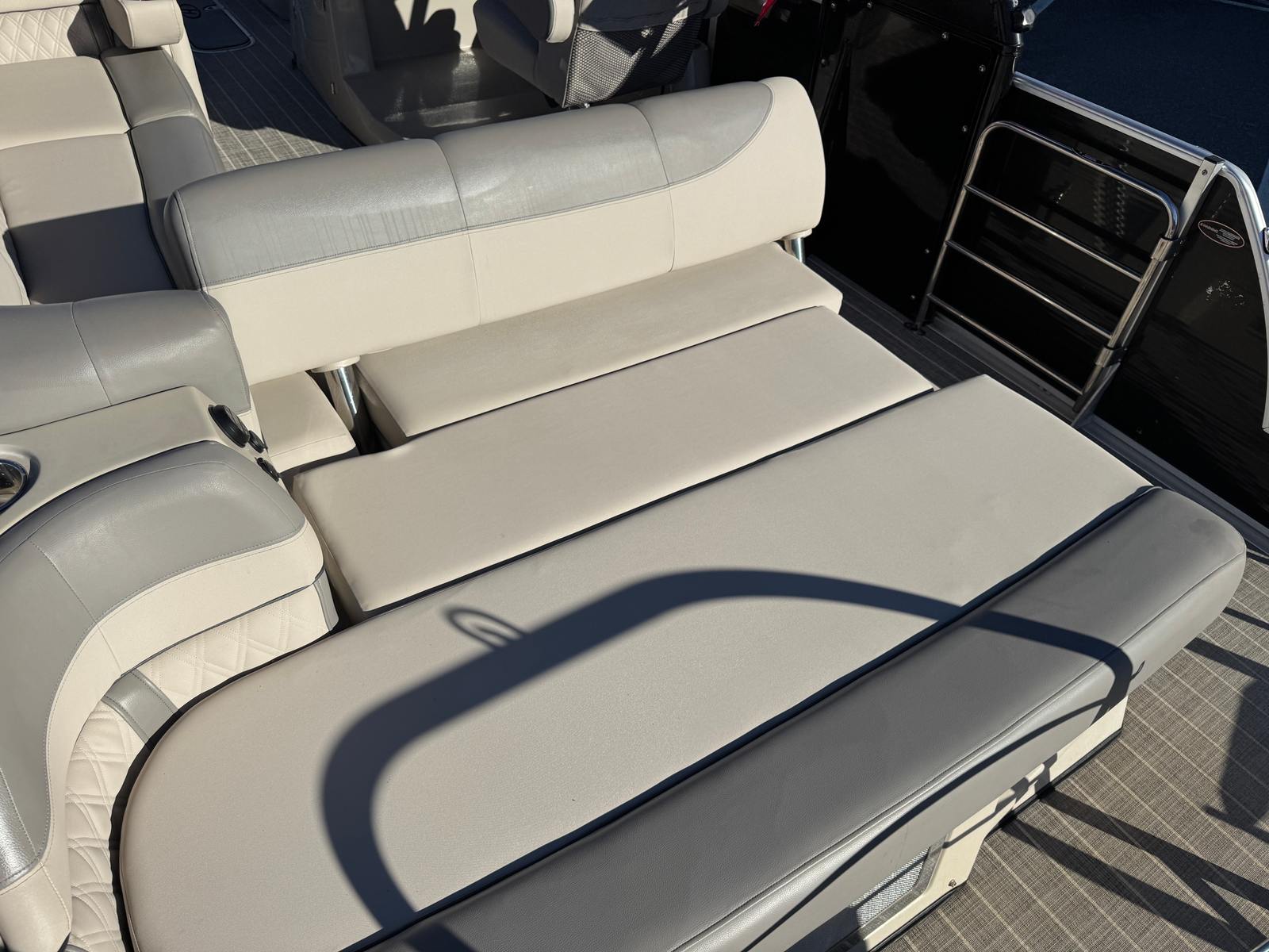 Powering this Harris Grand Mariner 250 is a single engine boasting a robust 300 horsepower, with 498 engine hours logged. This powerful setup ensures smooth acceleration, responsive handling, and the ability to cruise effortlessly across the water. Whether you’re towing water toys, heading out for a day of fishing, or simply enjoying a sunset cruise, the engine’s impressive output provides the performance you need for a variety of activities. The combination of high horsepower and pontoon stability means you can expect a thrilling yet comfortable ride every time you set out.