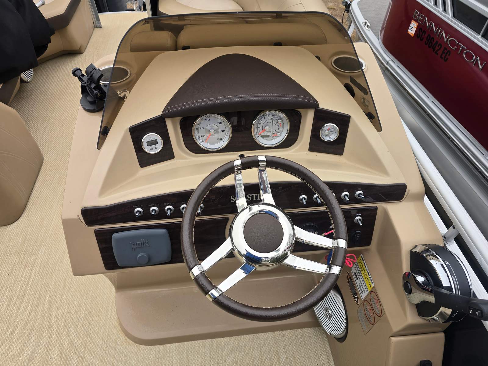 Beyond its recreational appeal, the Harris Solstice 220 is designed with practical features that make ownership a breeze. The single-engine setup simplifies maintenance and helps keep operating costs manageable, while the 150 HP engine provides an excellent balance of power and fuel efficiency. The 22-foot length makes this pontoon boat easy to dock, maneuver, and store, whether you’re keeping it at a marina or trailering it to your favorite waterway.The thoughtful layout offers convenient storage options for gear, life jackets, and personal items, keeping the deck clutter-free and organized. The sturdy construction and quality materials ensure that your investment will stand up to the rigors of regular use, providing peace of mind and lasting value.