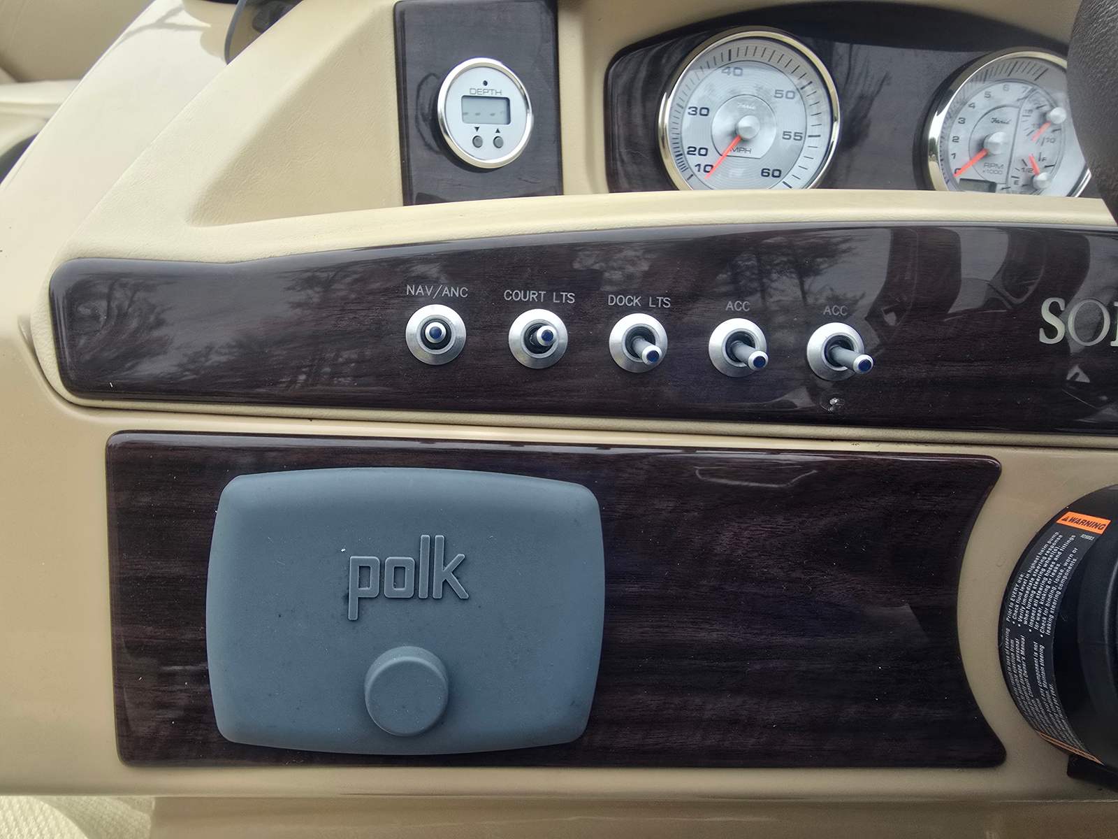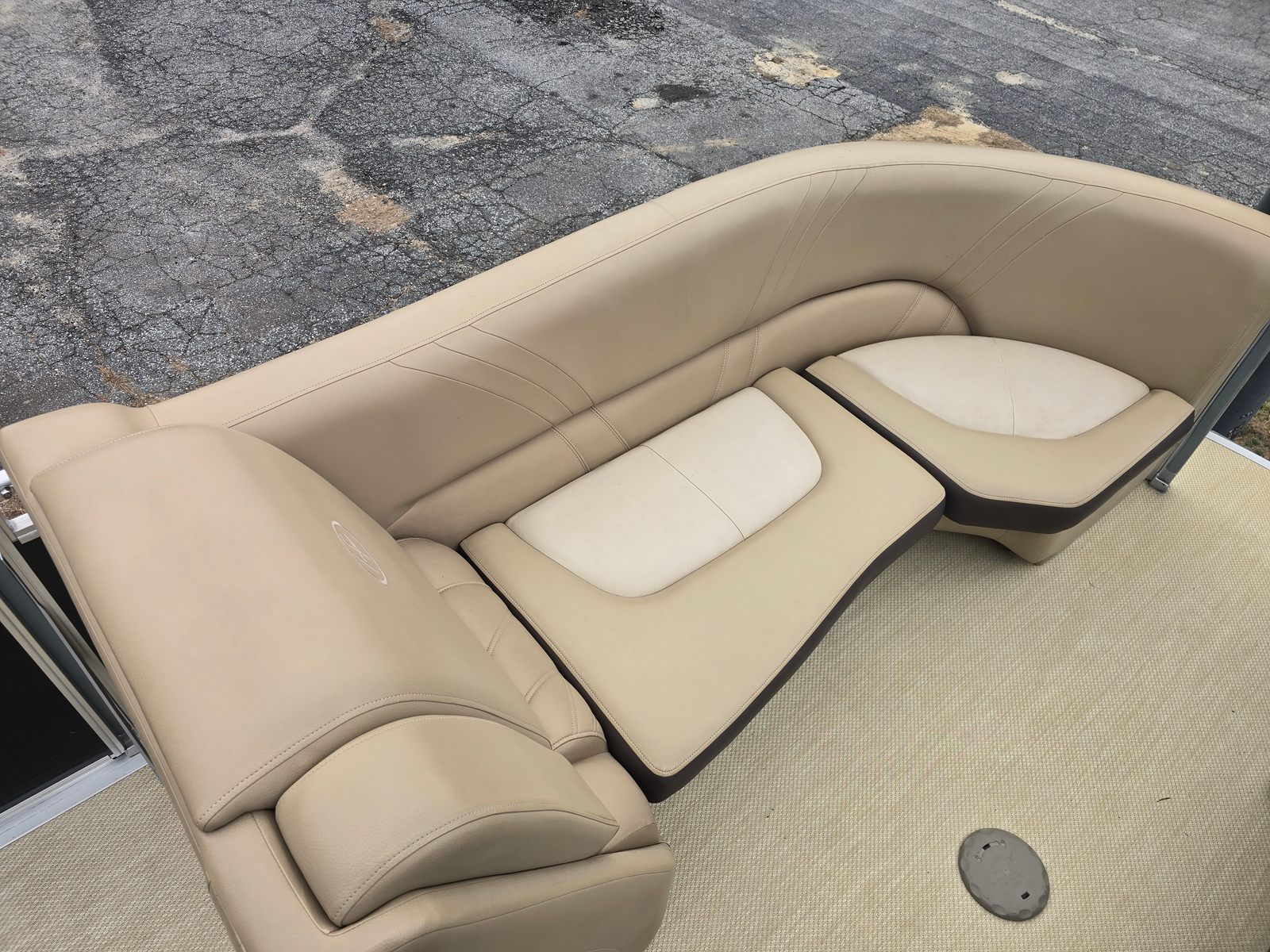 Powered by a single engine with 150 horsepower, the Harris Solstice 220 delivers a perfect balance of power and efficiency. The 150 HP engine ensures responsive handling and smooth acceleration, allowing you to cruise comfortably or pick up the pace for water sports and towing. With only 200 engine hours, this pontoon boat for sale promises reliable performance for years to come. Whether you’re navigating calm lakes or exploring winding rivers, the Solstice 220 offers a confident and enjoyable ride.