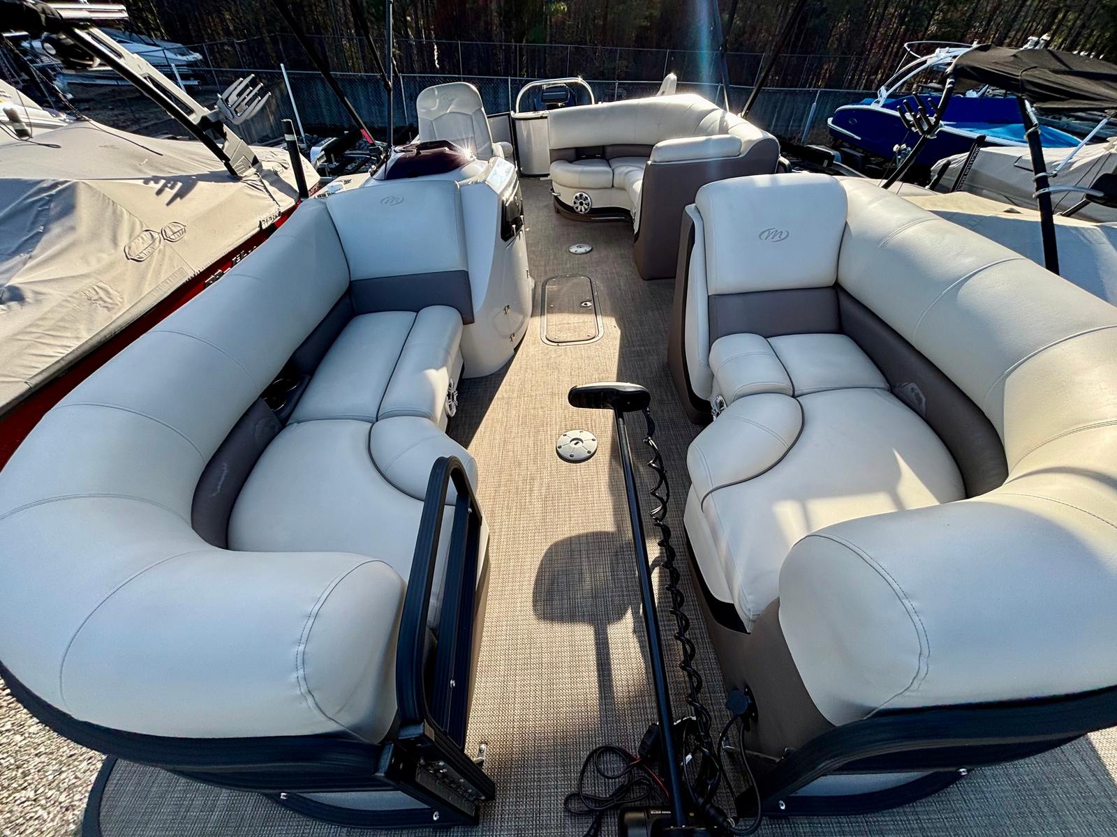 Owning the Manitou Oasis Angler 220 SHP means embracing a lifestyle of fun, relaxation, and adventure. This pontoon boat for sale is designed to bring people together, offering plenty of room for group outings, family gatherings, or quiet escapes on the water. The comfortable seating and spacious deck make it easy to entertain guests, while the angler-friendly features cater to fishing enthusiasts of all skill levels.The powerful 250-horsepower engine provides the speed and agility needed for water sports, tubing, or simply exploring new waterways. With only 95 engine hours, you can trust that this used Manitou boat for sale has plenty of life left for years of enjoyment.