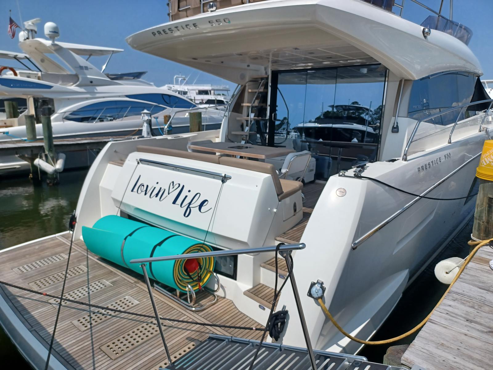 “Lovin Life” is a lightly used, Captain maintained yacht that has been thoughtfully cared for by her current Owners. The boat previously spent much of its life in freshwater on the Great Lakes. This particular Prestige 550 Flybridge is one of the few that has a hardtop rather than a canvas bimini making the spacious flybridge area the place to be underway complete with a wet bar, sink, electric grill and two refrigerators.