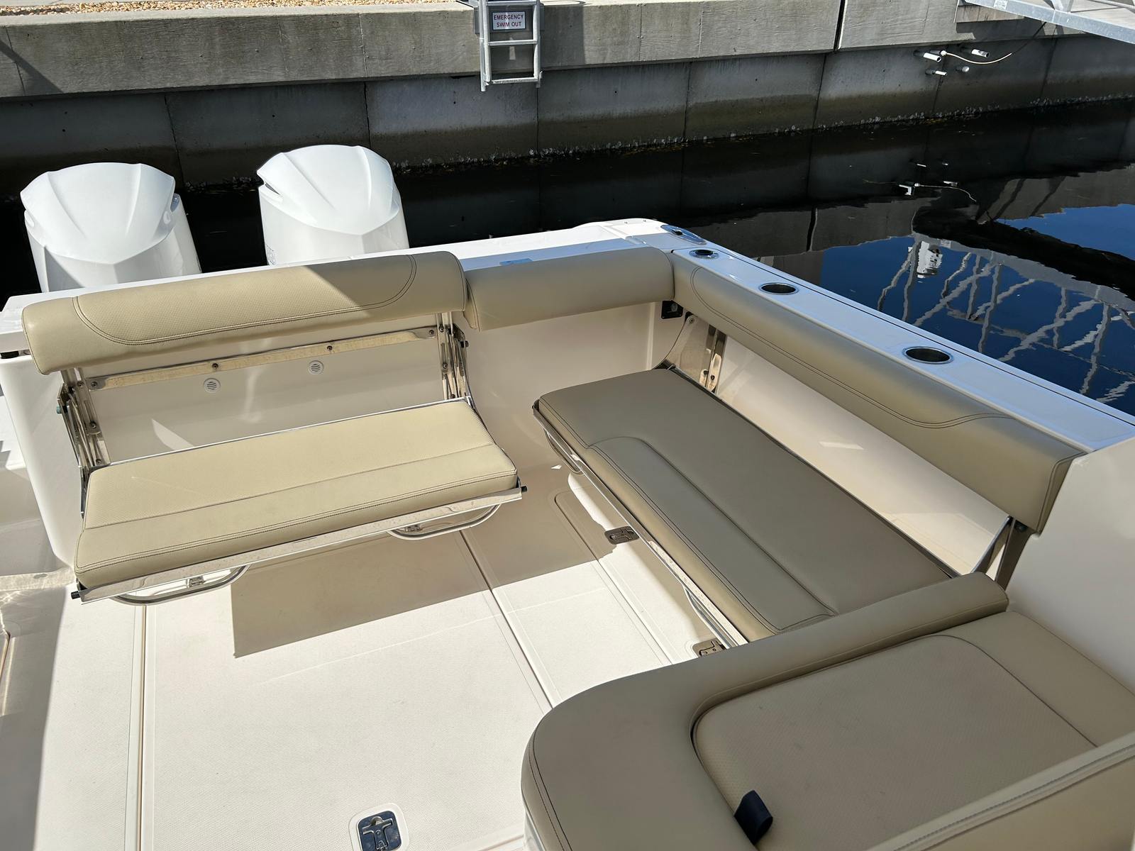 The Pursuit DC 325 is engineered for convenience and ease of ownership. Its dual engines not only provide impressive power but also contribute to fuel efficiency, allowing you to enjoy longer trips without frequent refueling stops. The boat’s generous storage compartments make it simple to stow fishing gear, picnic supplies, and personal items, ensuring everything you need is within reach. Docking is a breeze thanks to the responsive handling and intuitive controls, while the durable construction ensures your investment stands the test of time. Whether you’re a seasoned boater or new to the water, the DC 325’s user-friendly features make every outing enjoyable and stress-free.