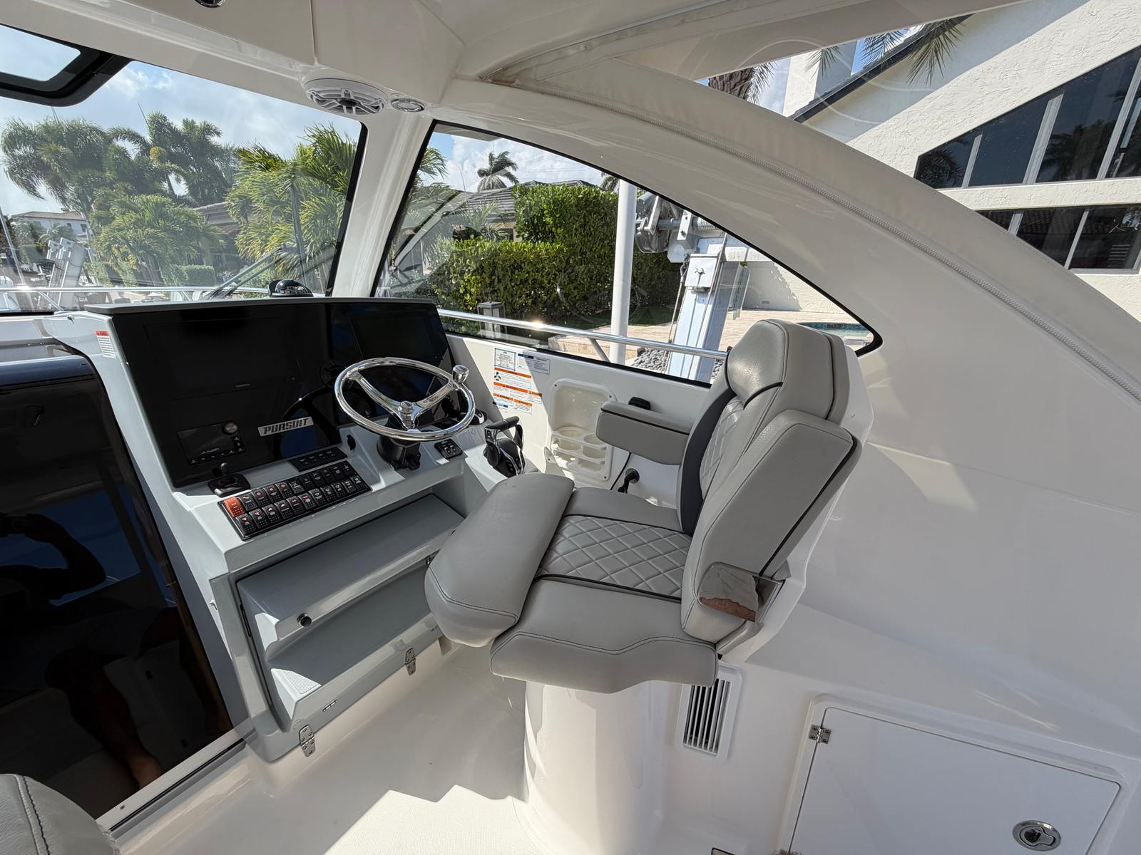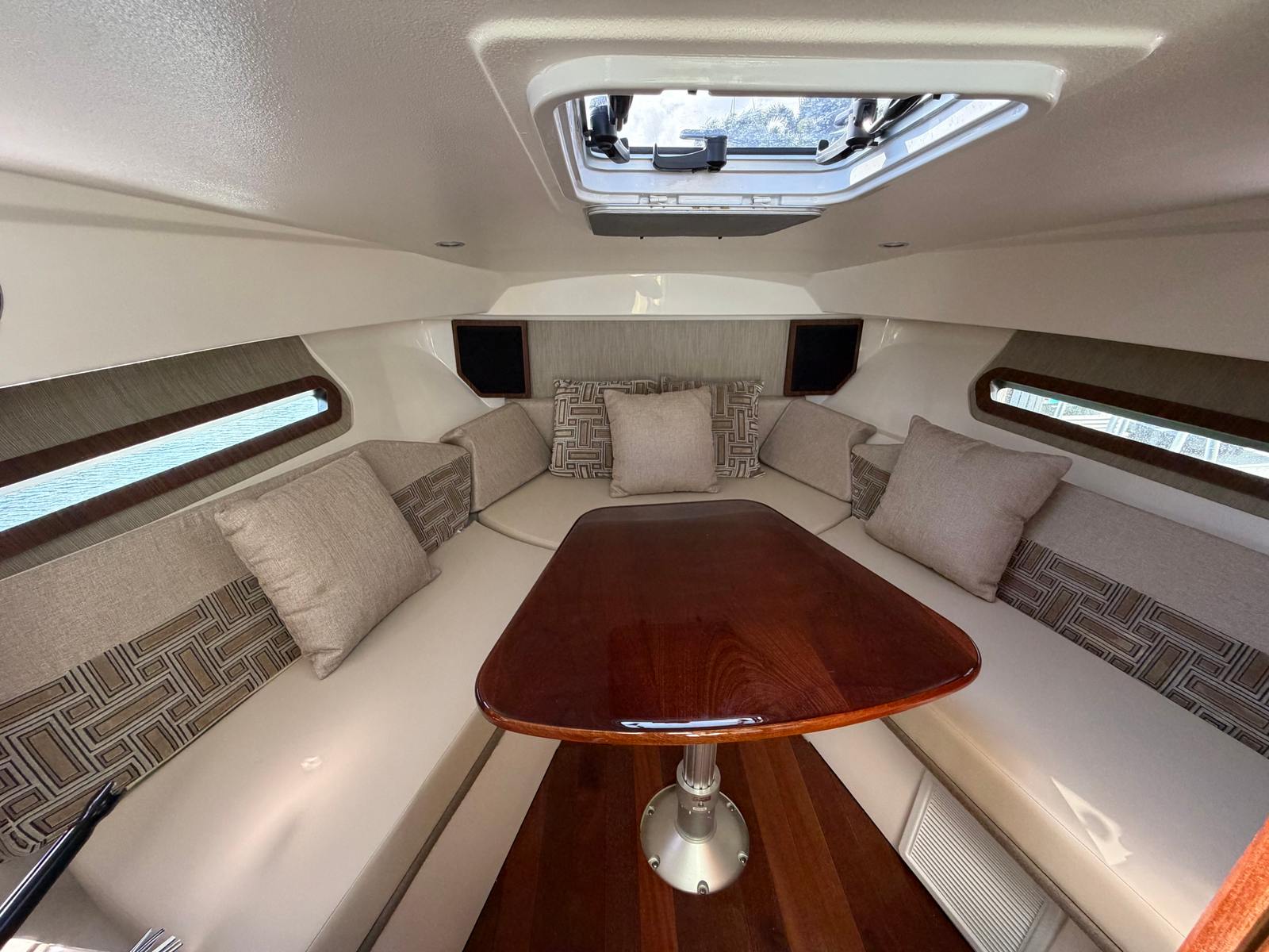 Beyond its recreational appeal, the Pursuit OS 325 offers practical benefits that make ownership a pleasure. The cruiser’s design includes ample storage for gear, supplies, and personal items, ensuring everything you need is within easy reach. Docking and maneuvering are simplified by the boat’s responsive handling and thoughtfully designed controls, making it accessible even for those new to boating.The efficient 300-horsepower engine strikes a balance between power and fuel economy, allowing you to enjoy extended trips without frequent refueling stops. Maintenance is straightforward, thanks to Pursuit’s reputation for reliability and quality construction. Whether you’re planning a quick day trip or a longer voyage, the OS 325 is equipped to handle your needs with ease.