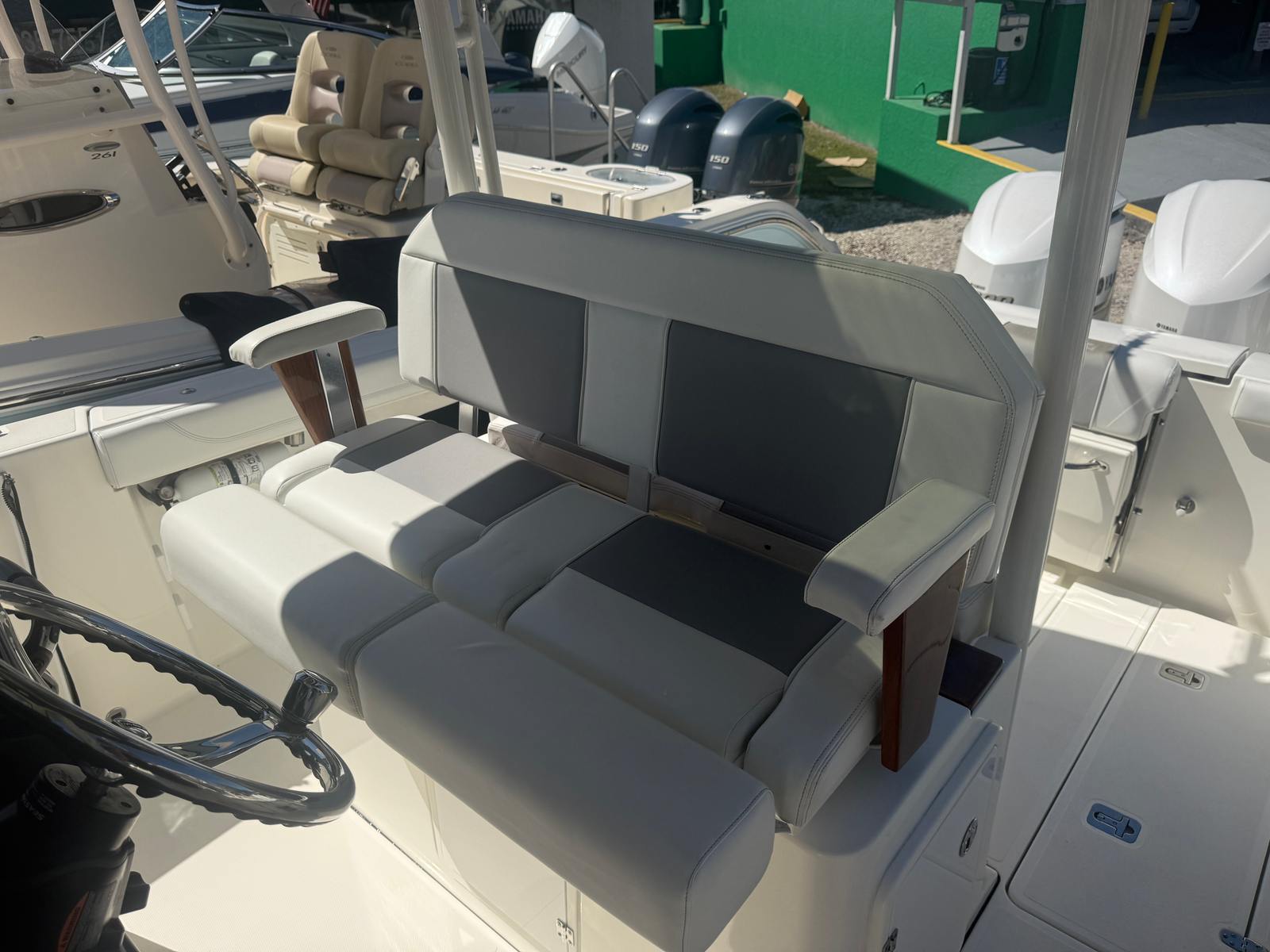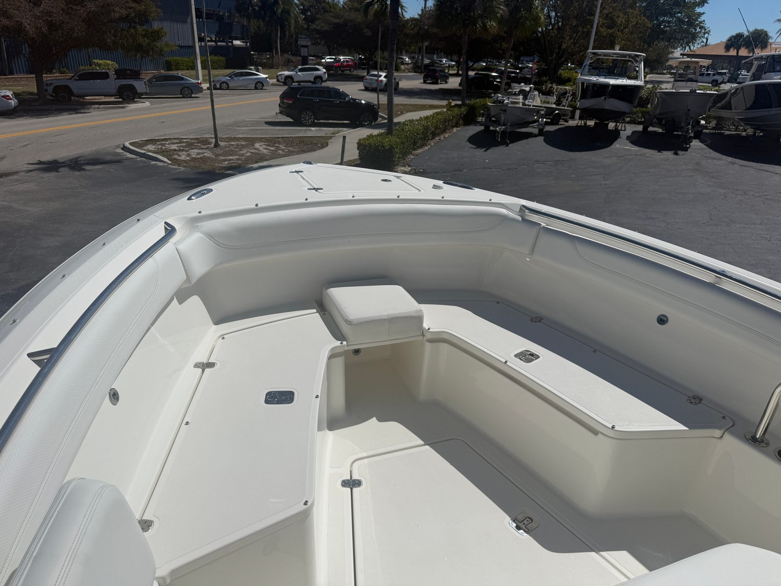 Features and Specifications: The Pursuit 288 S Center Console boat for sale is packed with features that elevate your boating experience. At 30 feet in length, it offers generous deck space for fishing, lounging, and entertaining. The Center Console layout provides unobstructed access around the boat, making it ideal for anglers who need freedom of movement and families who appreciate open, social spaces. The twin-engine configuration ensures powerful acceleration and reliable performance, while the modern helm station is designed for intuitive control and easy navigation. Every detail of the Pursuit 288 S reflects Pursuit’s commitment to quality, from its durable construction to its stylish finishes.