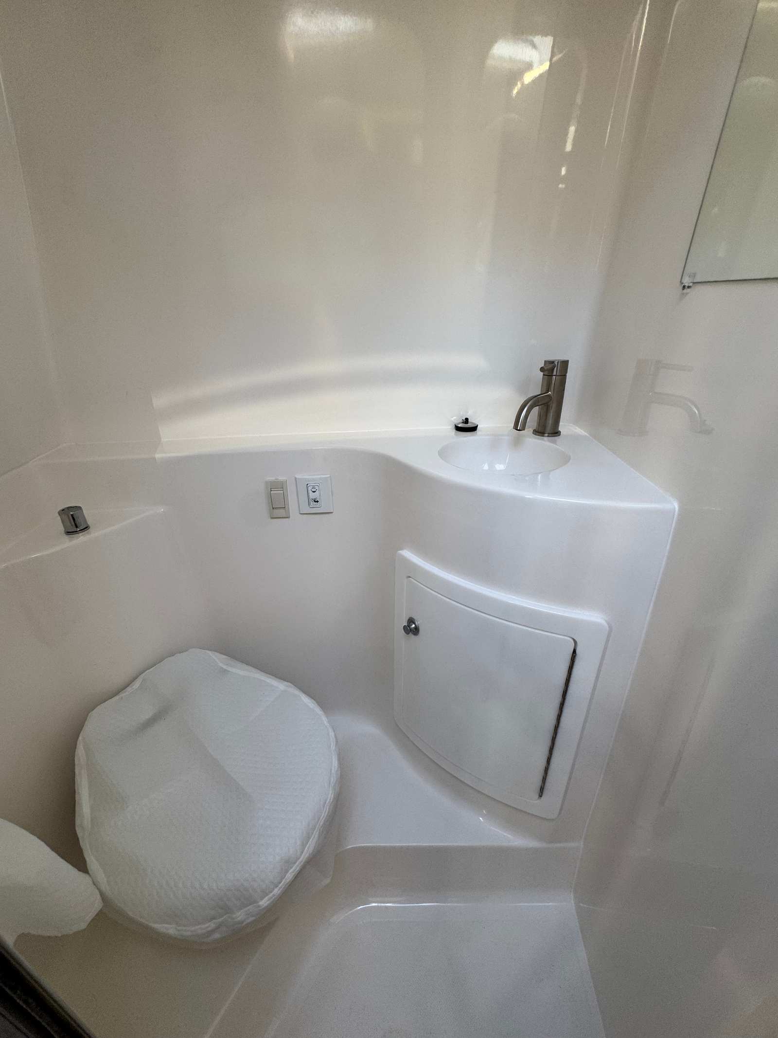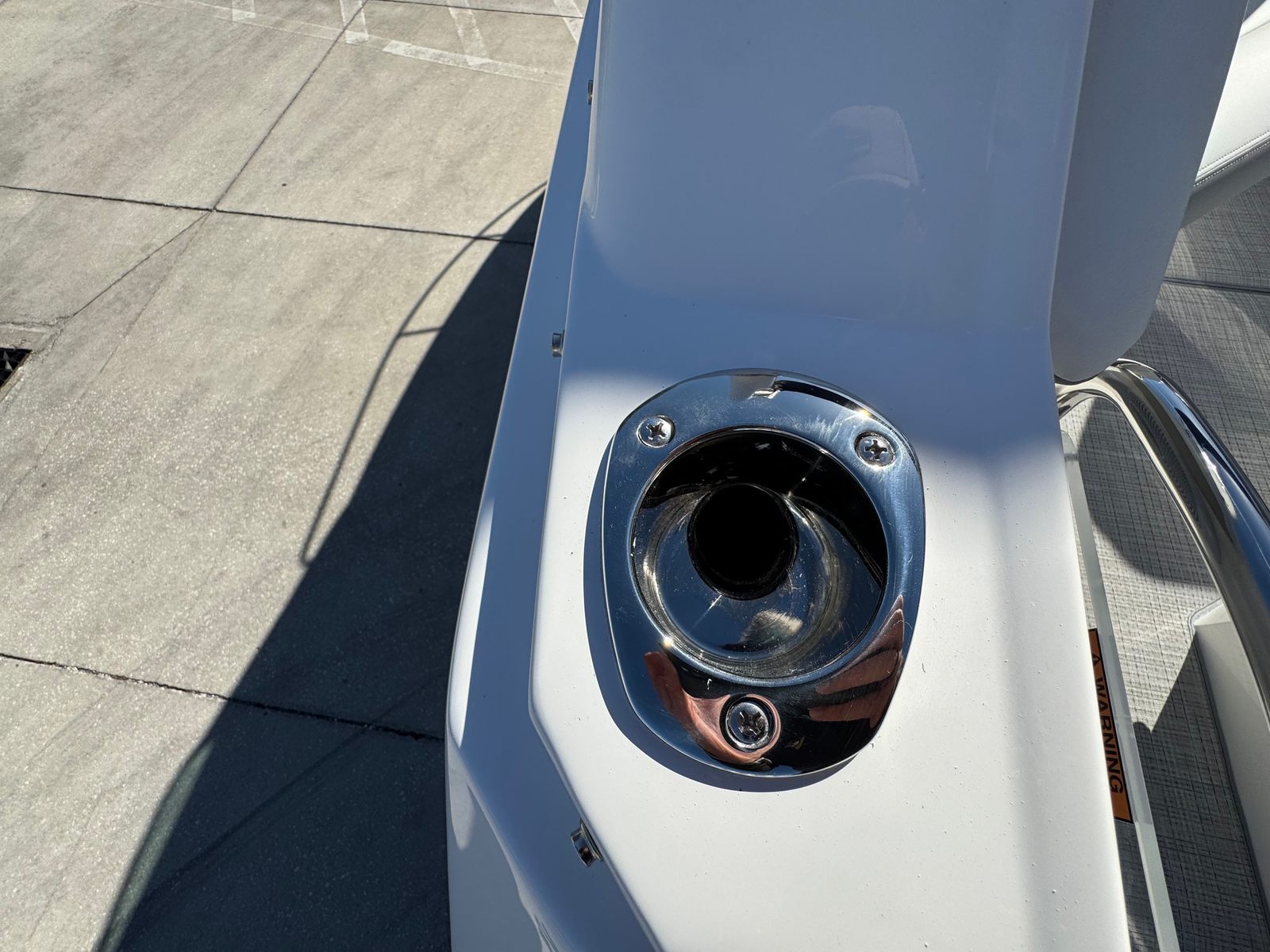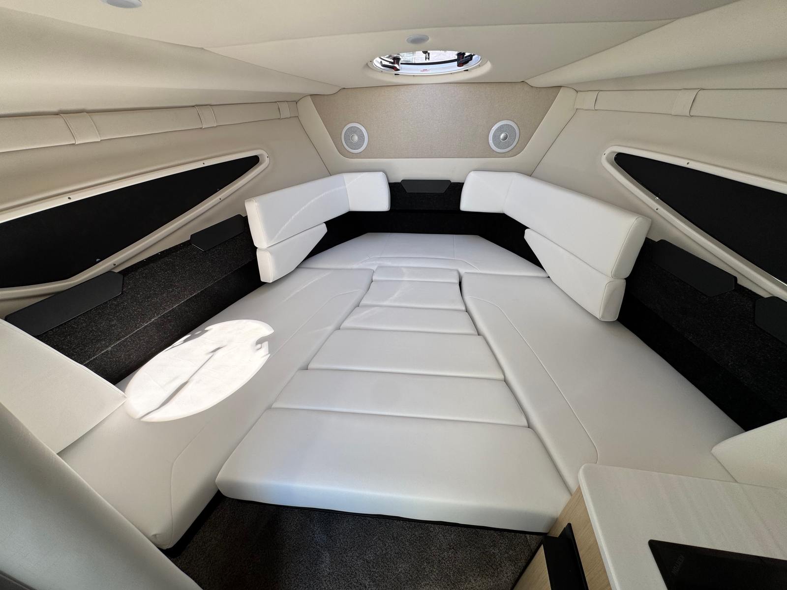 The Regal 26 XO is packed with special features that elevate your time on the water. The hull’s Tahiti Beach White color, paired with the Mediterranean Blue bootstripe and canvas, creates a striking visual appeal that turns heads at every marina. The bottom color matches the hull for a cohesive look, while the aft vent continues the elegant theme. Inside, the Titanium upholstery provides both style and comfort, making every journey a pleasure.For added convenience and protection, this cruiser comes equipped with a cockpit cover and a full enclosure, allowing you to enjoy boating in various weather conditions. The Mediterranean Blue canvas adds a touch of sophistication, while the cockpit seagrass mat enhances comfort underfoot. The Snowcap feature further accentuates the boat’s luxurious feel, ensuring that every detail is designed with your enjoyment in mind.
