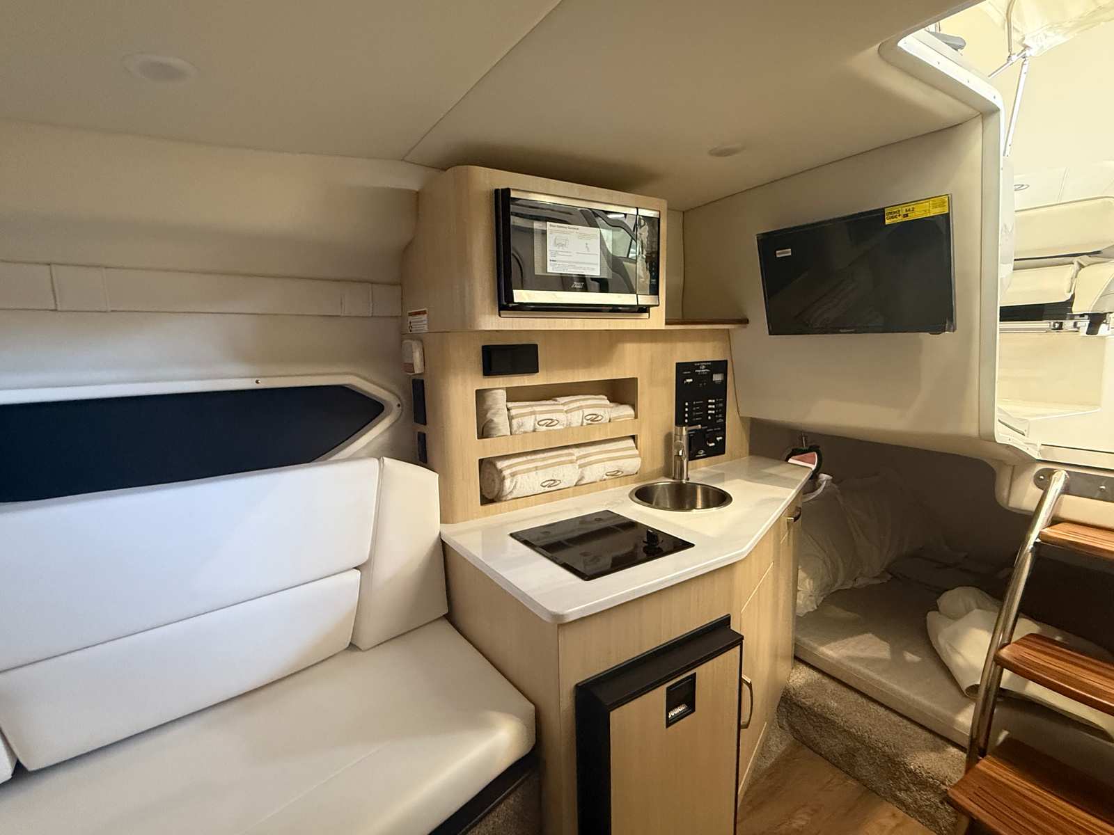 Owning the Regal 26 XO means embracing a lifestyle of fun, relaxation, and social connection. The spacious layout is perfect for hosting family and friends, with plenty of room to stretch out and enjoy the scenery. Whether you’re sunbathing on deck, sharing a meal in the cockpit, or unwinding in the cabin, every moment aboard this cruiser is designed for maximum enjoyment. The full enclosure ensures you can make the most of your boating adventures regardless of the weather, while the advanced features make every outing smooth and stress-free.The Regal 26 XO’s thoughtful design promotes comfort and convenience, making it easy to transition from daytime cruising to evening entertainment. The flat-screen TV with HDMI provides entertainment options for all ages, while the stylish color scheme creates a welcoming atmosphere that’s perfect for relaxing after a day on the water.