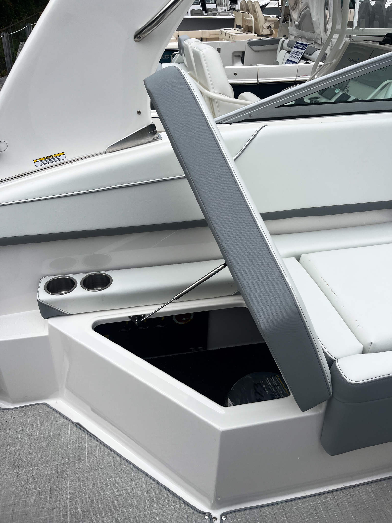 The Regal 26 XO comes loaded with premium features designed to enhance your boating experience. The dual Garmin 943XS displays, paired with the B60 transducer, offer advanced navigation and fish-finding capabilities, ensuring you stay on course and make the most of your time on the water. The electric toilet with pump out fittings adds a touch of convenience and comfort, making longer trips more enjoyable. The hot water heater provides warm water for onboard showers and cleaning, while the gas vapor detector ensures safety by monitoring for hazardous fumes. A remote-control spotlight is included, making nighttime navigation safer and more convenient. The PowerTower not only adds to the boat’s striking appearance but also offers practical benefits, such as easy storage for water sports equipment and improved visibility. The Tahiti Beach White hull and bottom color create a cohesive and elegant look, making the Regal 26 XO a standout among cruiser boats for sale.