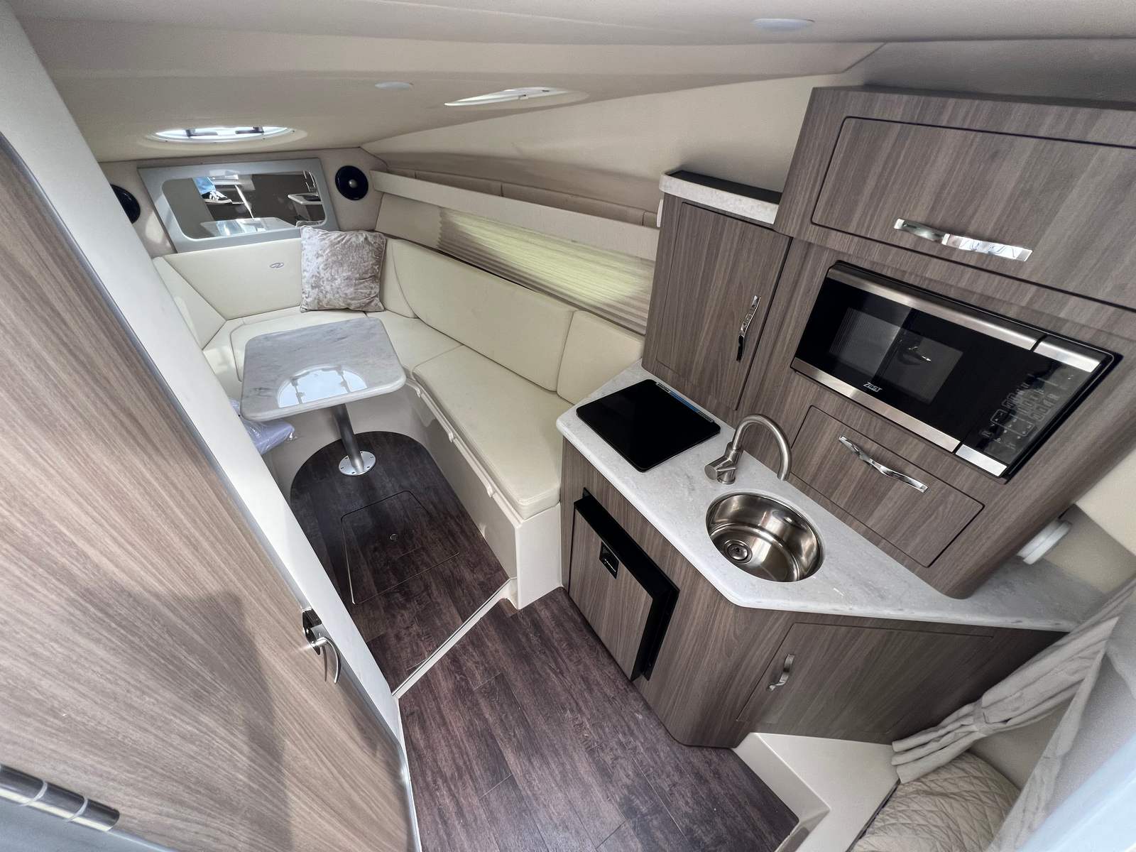 At the heart of this Regal 28 Express is a powerful single engine delivering 350 horsepower. With just 80 hours of use, the engine is barely broken in, promising many more seasons of reliable performance. The robust horsepower ensures smooth acceleration, responsive handling, and the ability to cruise comfortably at a variety of speeds. Whether you are planning a leisurely day on the water or want to get to your favorite destination quickly, this cruiser boat for sale is up to the task. The combination of power and efficiency makes it ideal for both short excursions and longer journeys.
