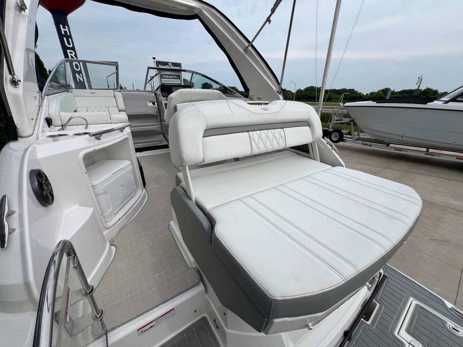 This Regal boat for sale is loaded with features that enhance both functionality and enjoyment. The dual 9-inch glass cockpit displays provide clear, intuitive navigation and system monitoring, making piloting the boat a breeze. The Garmin GSD24 and B60 transducer, along with the Garmin VHF 110, ensure you have the latest in marine electronics for safe and efficient travel. For music lovers, the stereo system comes equipped with a satellite tuner and antenna, so you can enjoy your favorite tunes wherever your journey takes you.The DeaDek from the swim platform is color-matched to the hull, offering both style and comfort underfoot. The white power tower adds a modern touch and provides shade and support for water sports activities. Blue underwater lighting creates a captivating ambiance during evening cruises, making every outing feel special. The anchor windlass with an all-chain setup simplifies anchoring, giving you peace of mind and convenience when you want to stop and enjoy the scenery.