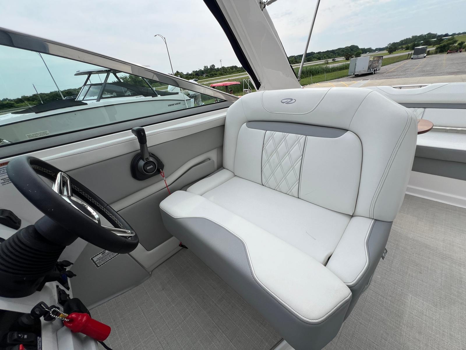 This Regal cruiser boat for sale is as practical as it is stylish. The nearly 29-foot length provides generous storage options for all your gear, making it easy to pack for a day trip or a weekend getaway. The efficient engine and modern electronics contribute to fuel savings and ease of navigation, so you can focus on enjoying your time on the water. Docking is straightforward, thanks to the boat’s responsive handling and well-designed controls.The anchor windlass with an all-chain setup makes it simple to secure your position, whether you are stopping for a swim, a picnic, or an overnight stay. The power tower is perfect for water sports enthusiasts, offering support for wakeboarding, tubing, or simply providing shade on sunny days. The DeaDek swim platform is comfortable and slip-resistant, making it easy to get in and out of the water.