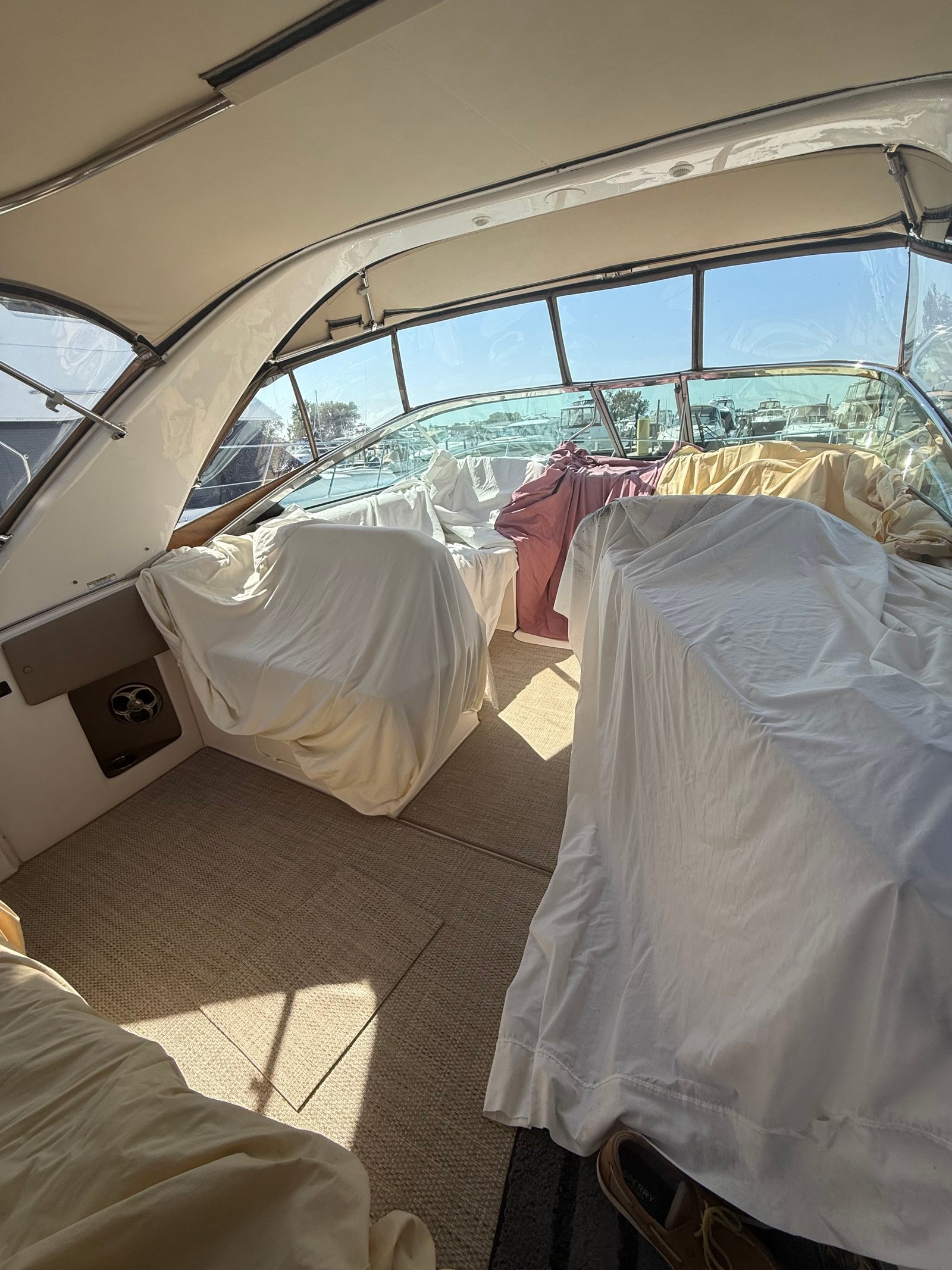 Owning the Regal 32 Express opens up a world of fun and relaxation on the water. The spacious cockpit and inviting cabin make it easy to host family and friends for unforgettable outings. The Sea Grass flooring not only adds a touch of luxury but also ensures easy maintenance, so you can spend more time enjoying the water and less time cleaning up. The wet bar in the cockpit is ideal for mixing drinks and serving snacks, turning every cruise into a celebration.The cabin’s AC/heat system keeps you comfortable in any weather, while the dinette provides a cozy spot for meals, games, or simply unwinding after a day of adventure. The Vaccuflush head offers the convenience and cleanliness you expect from a premium cruiser, making overnight stays and extended trips more enjoyable. With only two previous owners and a recent detailing, this boat is ready to deliver years of memorable experiences.