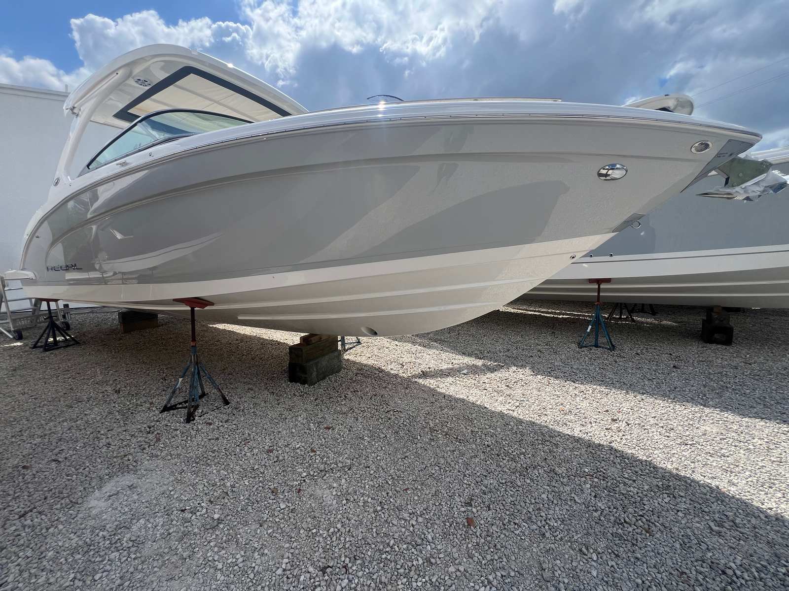 Step aboard the Regal 33 OBX and discover a world of comfort and convenience. The cockpit is adorned with a luxurious Seagrass Mat, offering a soft, non-slip surface that’s both stylish and practical. The hard top with an integrated sunroof provides ample shade and ventilation, allowing you to enjoy the sunshine or retreat to a cool, sheltered space as desired. For added protection from the elements, both bow and cockpit covers are included, ensuring your boat remains in pristine condition.The aft cockpit features an electric Sureshade for the hard top, extending your comfort zone and creating the perfect environment for relaxation or entertaining guests. The starboard windshield wiper ensures clear visibility in all weather conditions, while the electric toilet with pump-out fittings adds a touch of luxury and convenience for extended outings. Every detail, from the hull color to the bootstripe, has been carefully selected to create a cohesive and eye-catching aesthetic that sets this bowrider apart from the rest.
