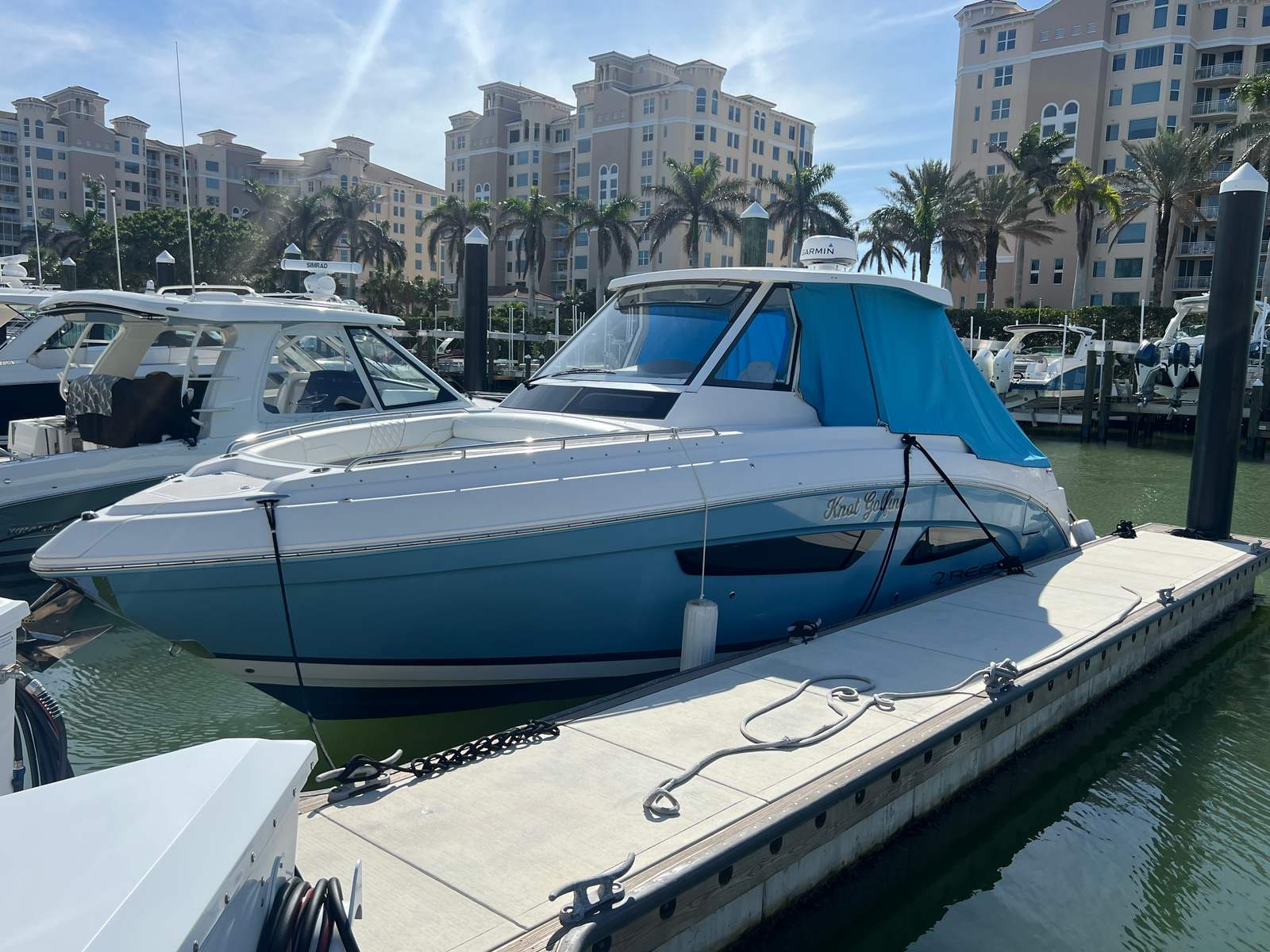 The 2020 Regal 33 SAV is packed with features that elevate your boating experience. As a Center Console boat, it offers an open and versatile layout, perfect for both social gatherings and serious fishing excursions. The spacious deck provides ample room for guests to move about comfortably, while the ergonomic helm station ensures that the captain has everything within easy reach. The high-quality construction and attention to detail are evident throughout, from the premium upholstery to the durable, non-slip decking. With its generous length of just over 34 feet, this Regal boat for sale offers plenty of space for seating, storage, and entertaining.