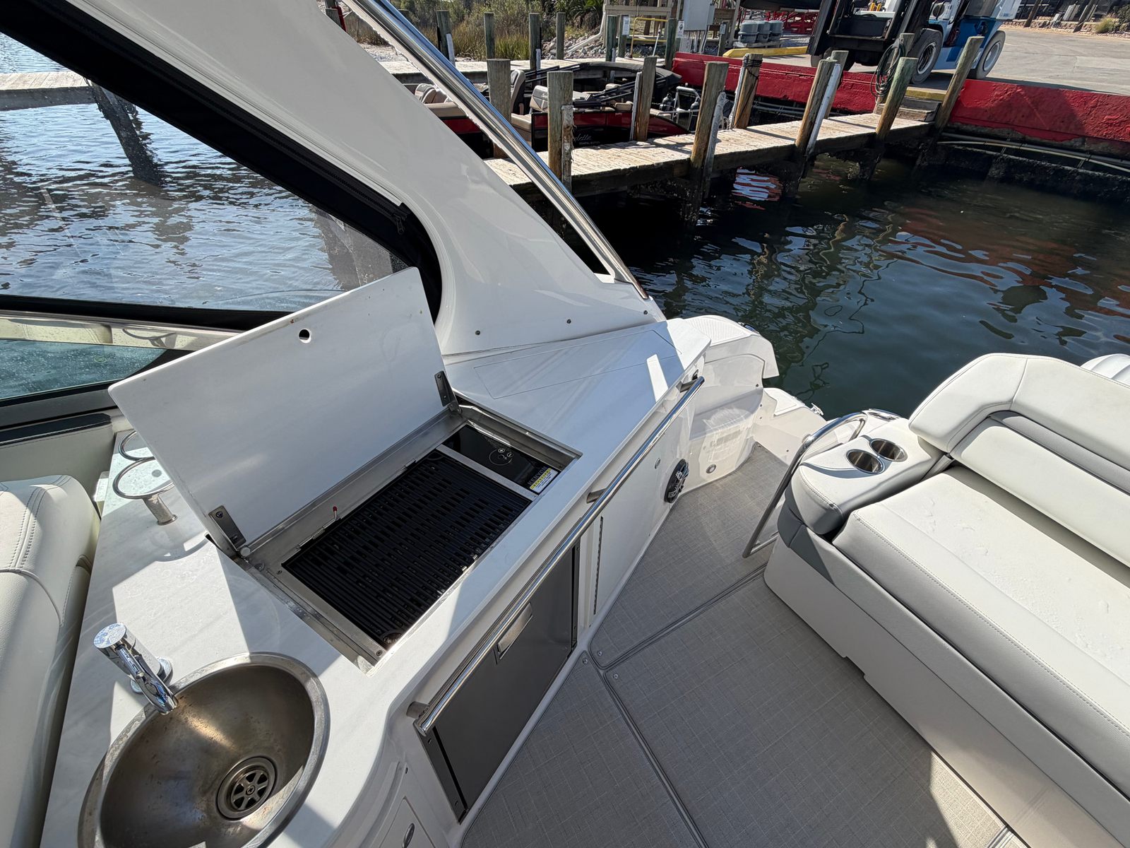 In addition to its recreational appeal, the Regal 33 XO offers practical advantages that make ownership a pleasure. The twin-engine configuration enhances maneuverability, making docking and handling in marinas straightforward and stress-free. The spacious design provides ample storage for gear, supplies, and personal items, ensuring you’re always prepared for a day on the water.Fuel efficiency is another highlight of the Regal 33 XO, allowing you to enjoy extended outings without worrying about frequent refueling stops. The boat’s thoughtful layout makes it easy to keep everything organized, from water toys to picnic essentials, so you can focus on enjoying your time with family and friends.