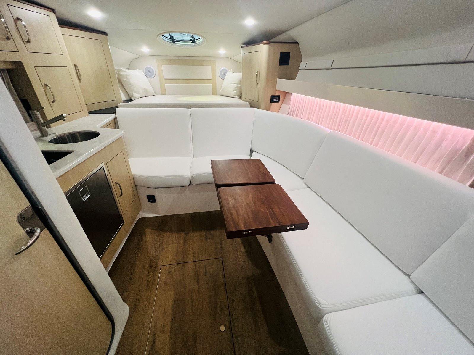 Powering the Regal 33 XO are two robust engines, delivering a combined 600 horsepower. This dynamic setup ensures exhilarating acceleration, smooth cruising, and reliable handling in a variety of water conditions. Whether you’re navigating coastal waters or exploring inland lakes, the 33 XO’s twin-engine configuration offers the perfect balance of speed and control. The advanced engineering behind Regal’s propulsion system means you can enjoy efficient fuel consumption and responsive maneuverability, making every journey both thrilling and economical.