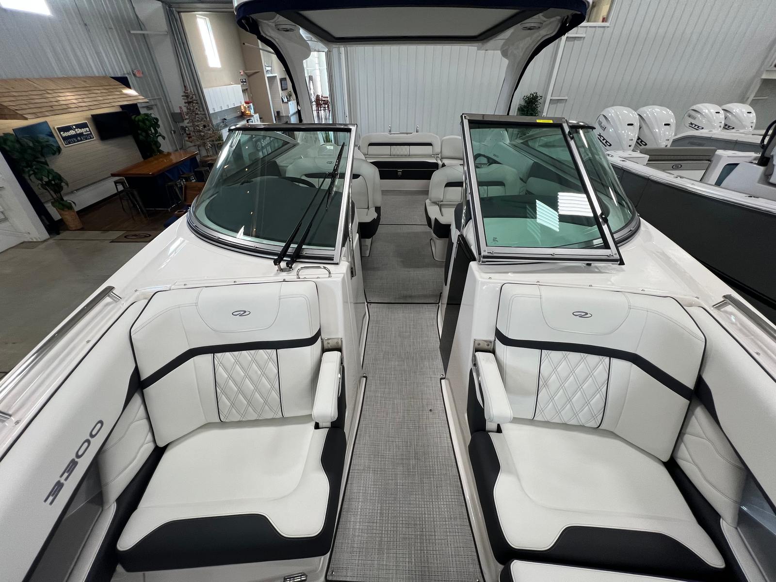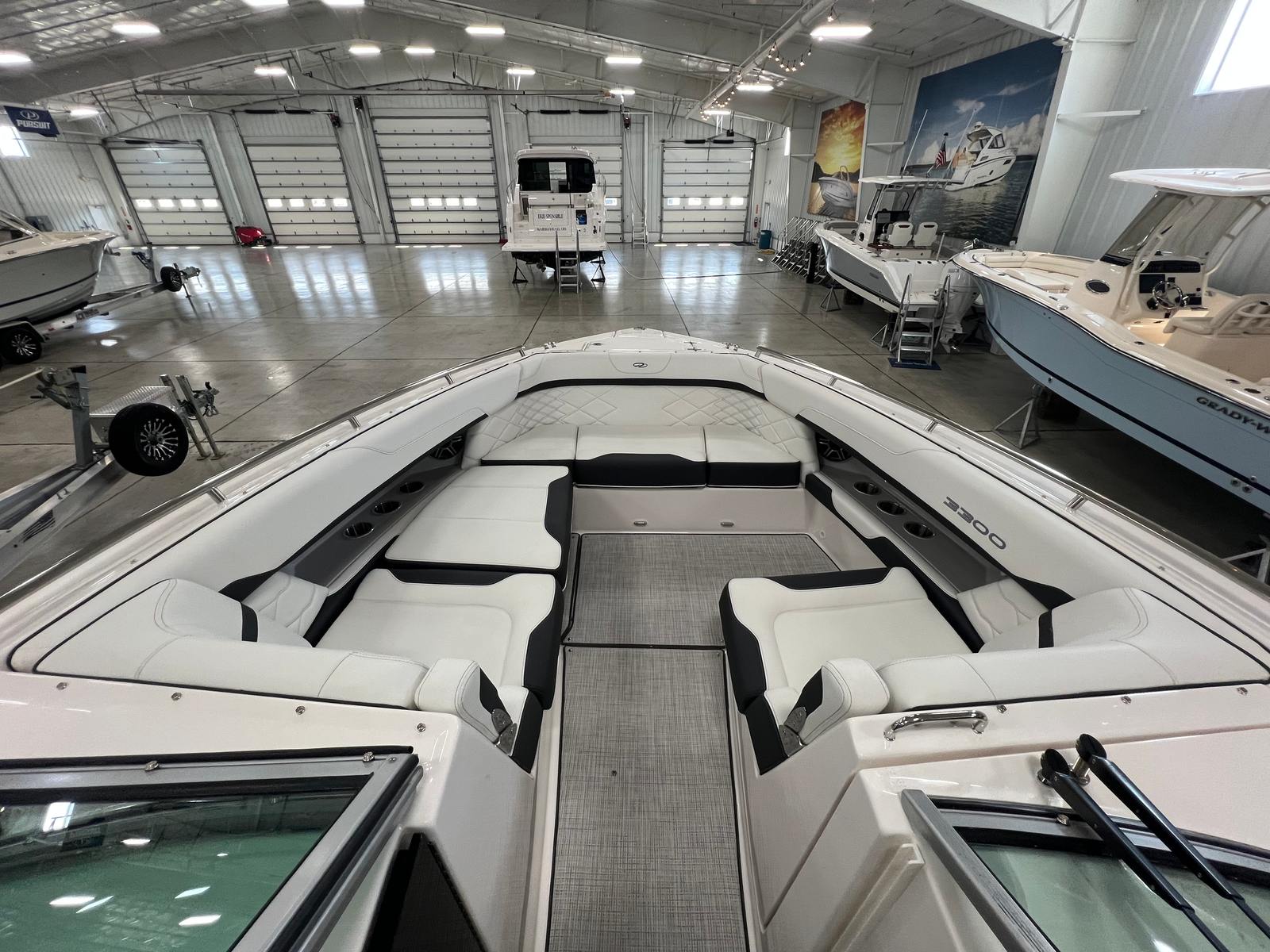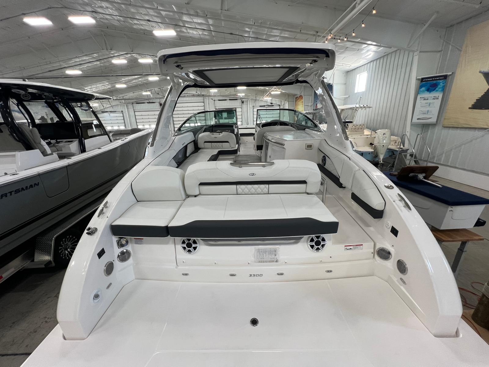 Under the hood, the Regal 3300 is powered by twin engines delivering a combined 700 horsepower, providing exhilarating acceleration and smooth cruising. This powerful setup ensures you have the performance needed for a variety of activities, from high-speed runs across the lake to leisurely cruises along the coastline. The advanced bow thruster enhances maneuverability, making docking and tight turns effortless, even in challenging conditions. Whether you are navigating busy marinas or exploring secluded coves, the Regal 3300 offers responsive handling and reliable power every time you take the helm.