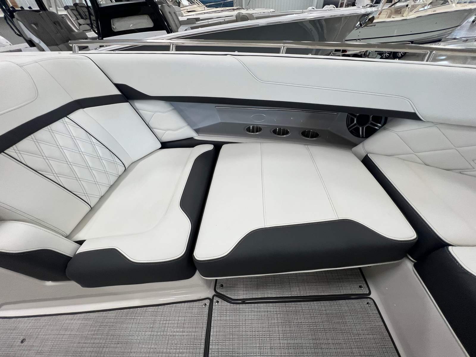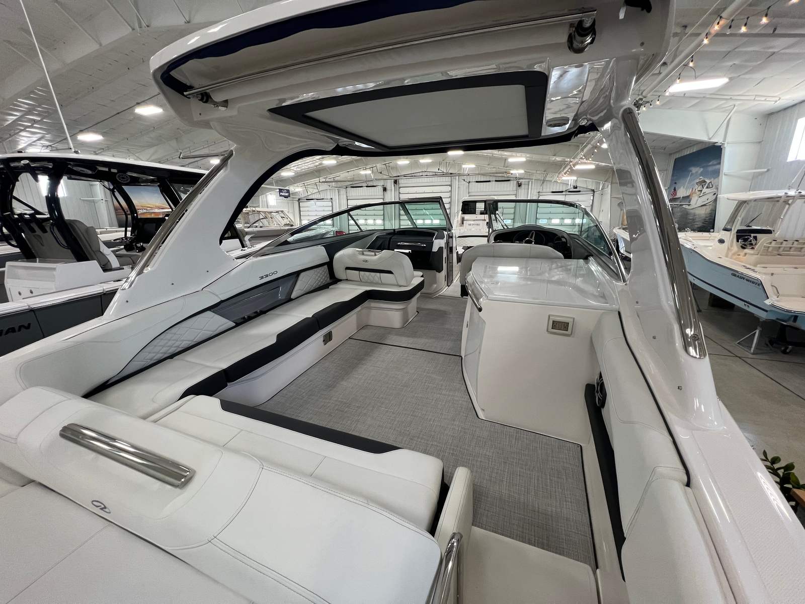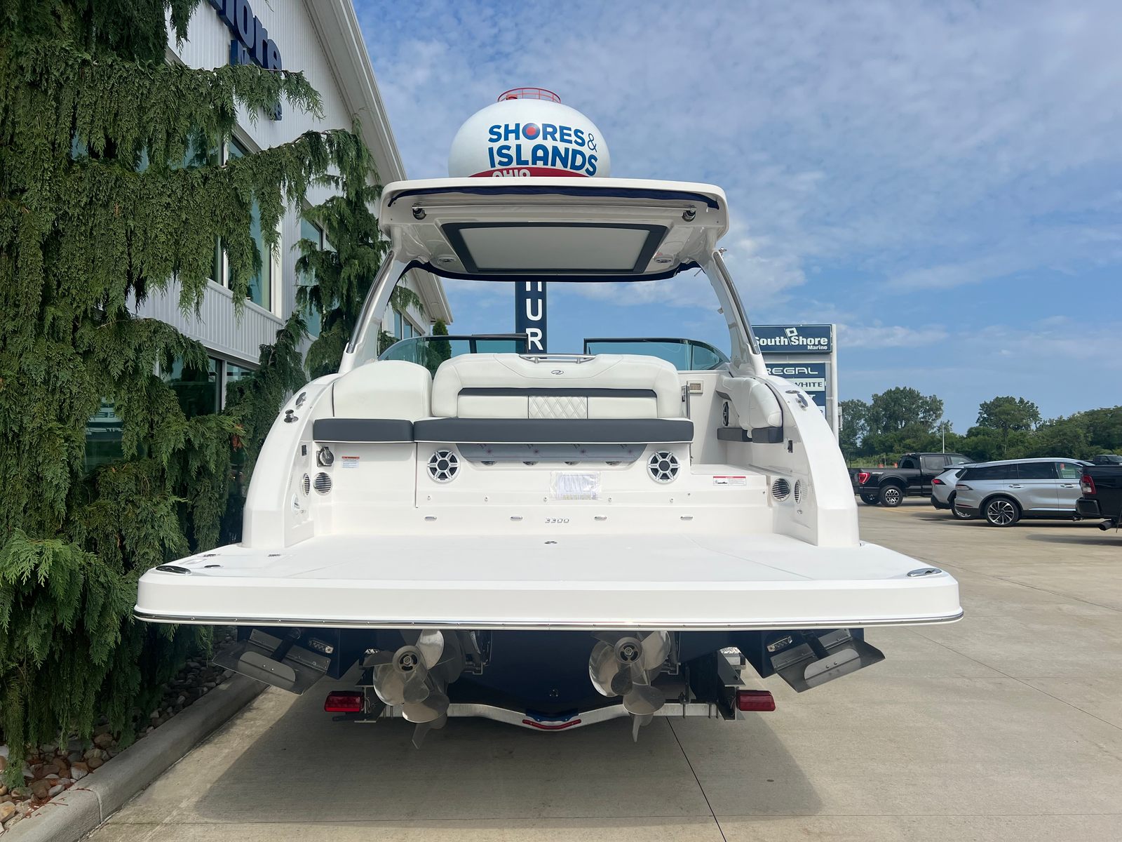 Under the hood, the Regal 3300 is powered by twin engines delivering a combined 700 horsepower, providing exhilarating acceleration and smooth cruising. This powerful setup ensures you have the performance needed for a variety of activities, from high-speed runs across the lake to leisurely cruises along the coastline. The advanced bow thruster enhances maneuverability, making docking and tight turns effortless, even in challenging conditions. Whether you are navigating busy marinas or exploring secluded coves, the Regal 3300 offers responsive handling and reliable power every time you take the helm.